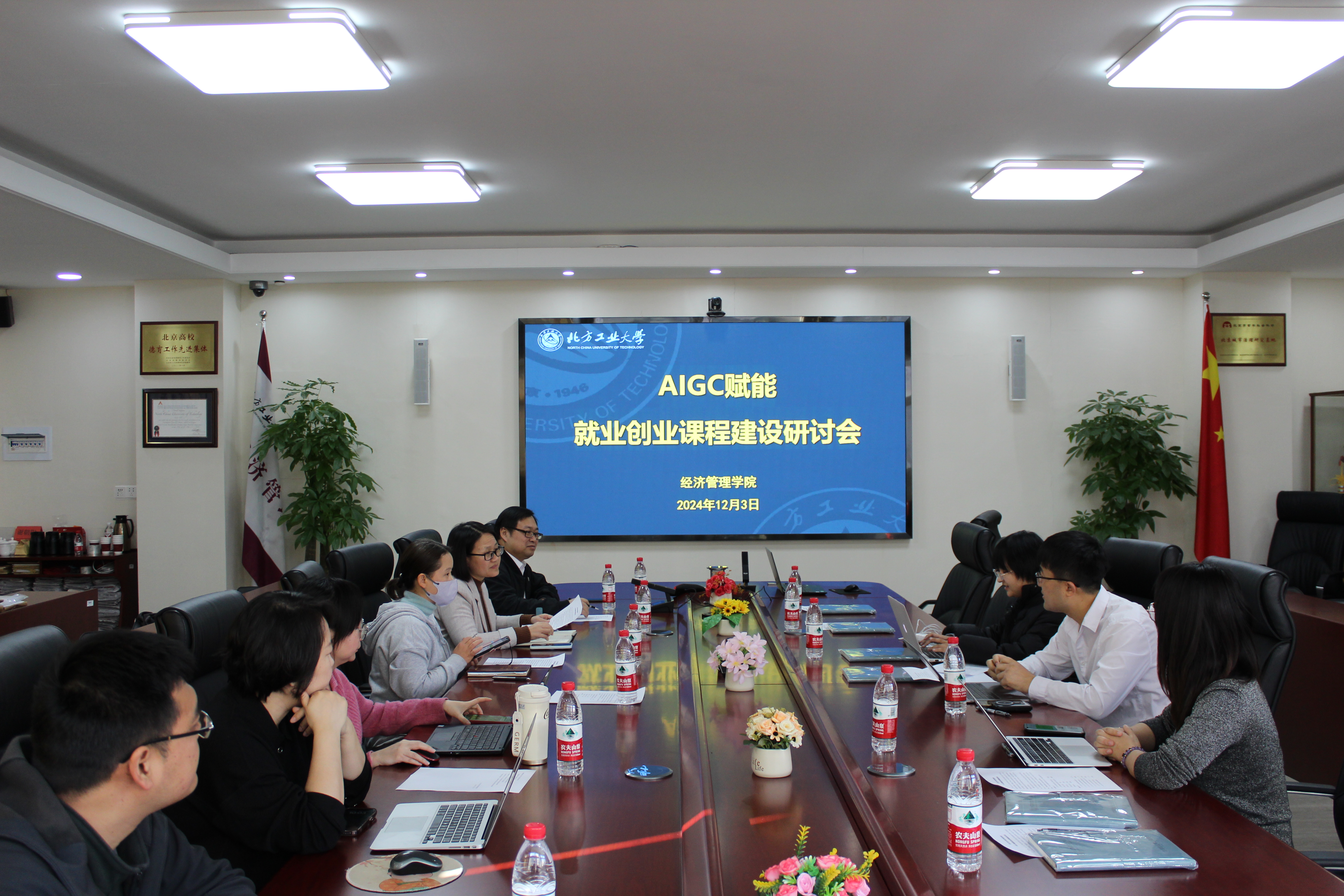 12月3日,Beat365官方网站在励学楼201联合两家企业召开AIGC赋能就业创业课程建设研讨会。Beat365官方网站党委副书记王帏、副院长蒋贵凰、北京宇乐树科技有限公司联合创始人史敏思、北京超智能科科技有限公司CEO杨建刚、商业化合伙人郝夏男,以及Beat365官方网站刘冰、段晓红、张泽圣等老师参与研讨,实验中心主任兼创新创业基地负责人牛天勇主持。