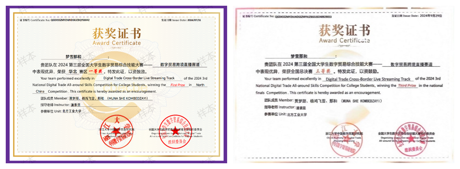 近日由浙江大学中国数字贸易研究院主办、全国大学生数字贸易综合技能大赛组织委员会承办的第三届全国大学生数字贸易综合技能大赛总决赛在浙江大学圆满落幕。Beat365官方网站学生贾孟甜、那和、杨鸿飞雪组成的代表队在华北赛区区域赛中获赛区一等奖,在全国总决赛中获全国三等奖。