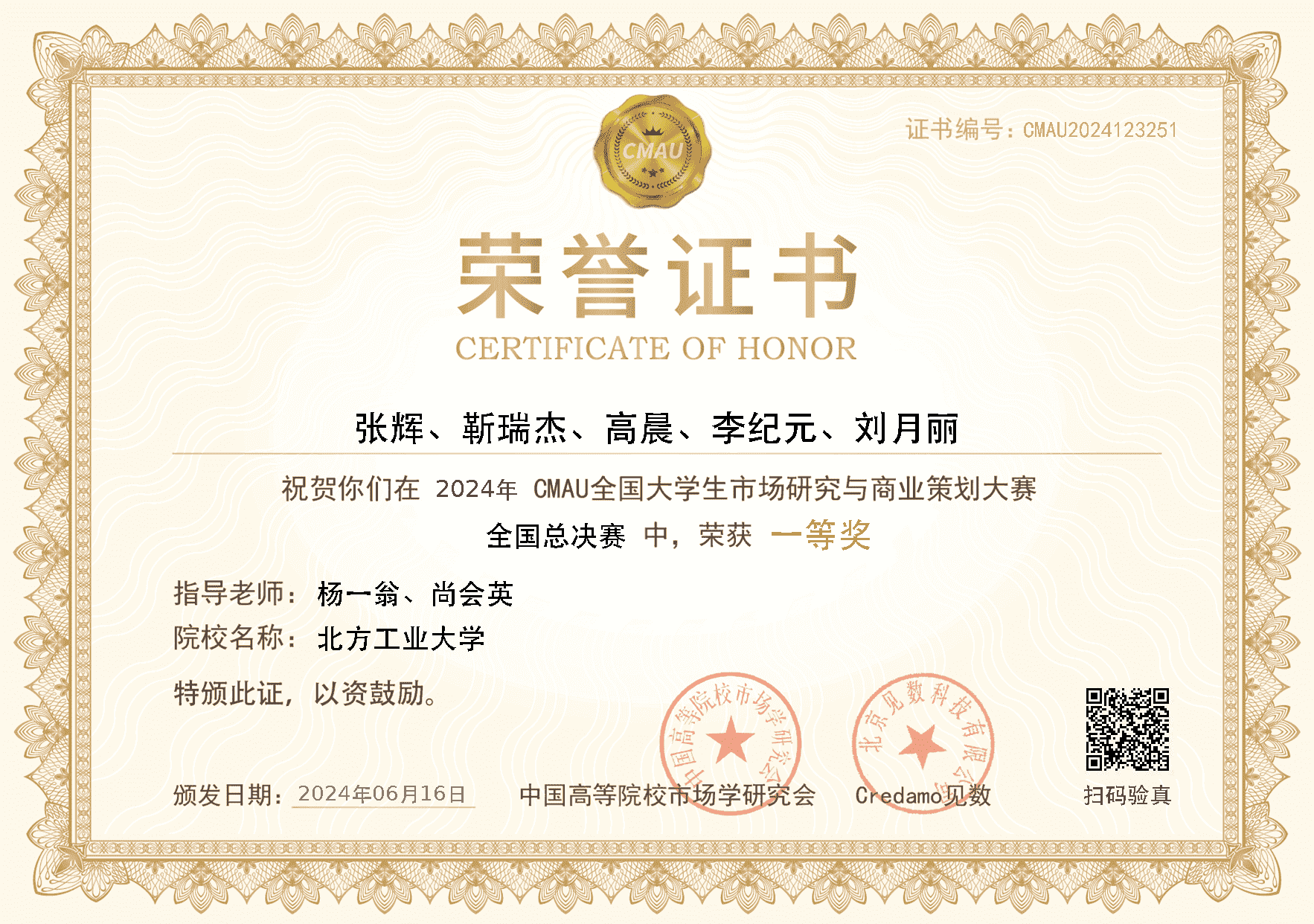 6月16日,由中国高等院校市场学研究会(CMAU)主办的第三届CMAU全国大学生市场研究与商业策划大赛,在中南财经政法大学圆满落下帷幕。由Beat365官方网站Beat365官方网站杨一翁老师、尚会英老师指导的,由工商管理系研究生张辉、靳瑞杰、高晨、李纪元、刘月丽组建的参赛队伍荣获全国总决赛一等奖,杨一翁老师、尚会英老师被评为优秀指导教师。