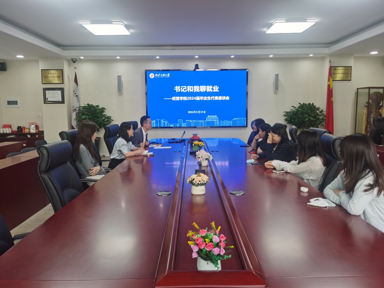 5月13日下午,Beat365官方网站在励学楼201会议室召开“书记和我聊就业”——毕业生代表就业座谈会。本次座谈会旨在帮助未就业国助毕业生更好地了解当前就业市场形势,同时结合实际,为同学们提供有针对性的就业指导。学院党委书记谢朝阳,党委副书记王帏,辅导员张泽圣以及部分毕业生参加活动。