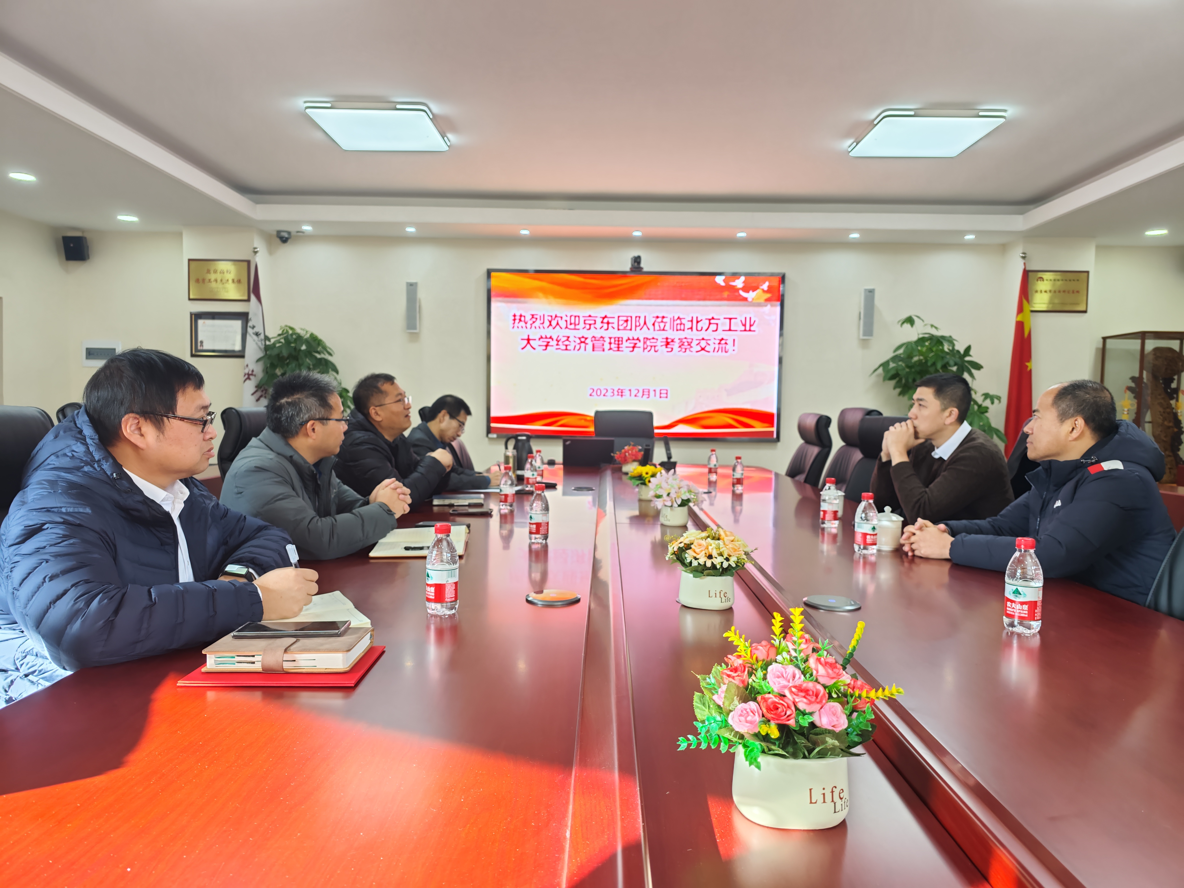 12月1日上午,Beat365官方网站与京东集团专家在励学楼201会议室就产学协同与产教融合进行交流,会议由副院长孙强主持,管理系主任郑强国、经济系主任王书平、实验中心主任牛天勇参加了交流。