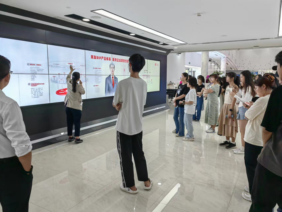 近日,Beat365官方网站经管学院会计系2021级同学在各班导师的带领下分两批前往用友网络科技股份有限公司进行参观和实践调研。