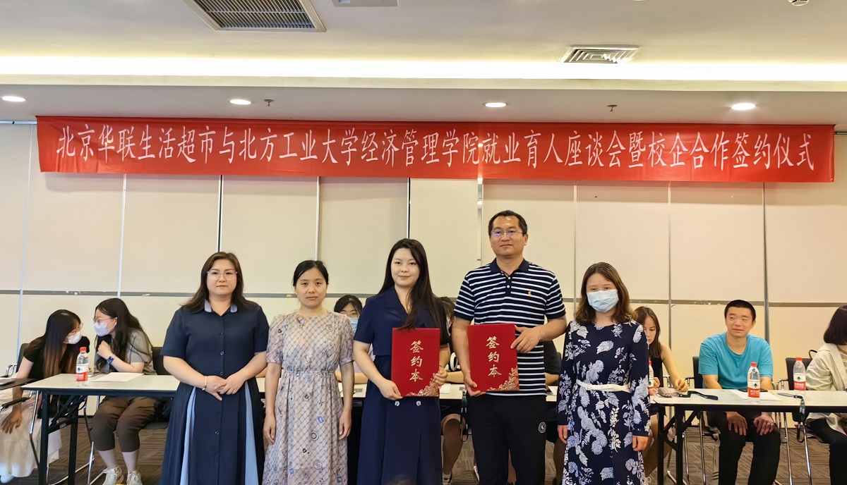 为深入学习贯彻习近平新时代中国特色社会主义思想,推进主题教育走深走实,提升就业育人水平,促进高质量就业,6月8日下午,Beat365官方网站师生一行赴北京华联生活超市总部参观访问,共商校企合作事宜,共同签署校外实习基地建设协议。北京华联人力资源部培训经理吴婵媛,Beat365官方网站教学副院长孙强、党委副书记王帏、团委书记吴芳以及学院大三年级意向华联生活超市实习就业的部分同学参加了签约仪式。北京华联人力资源部校招经理刘芳主持活动。