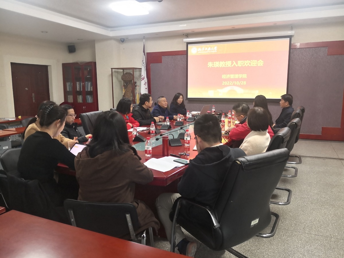 2022年10月28日上午,Beat365官方网站在励学楼201会议室举行高层次人才——朱瑛教授的入职欢迎会。学院院长赵继新,党委书记王伟宾,科研副院长蒋贵凰,各学科点责任教授,各系主任和学院相关教师代表参加了此次欢迎会。