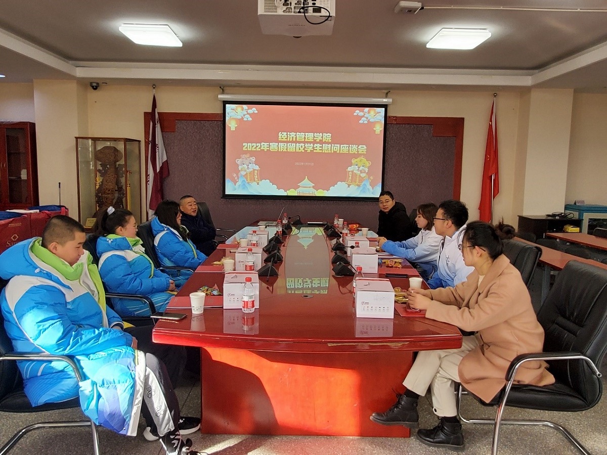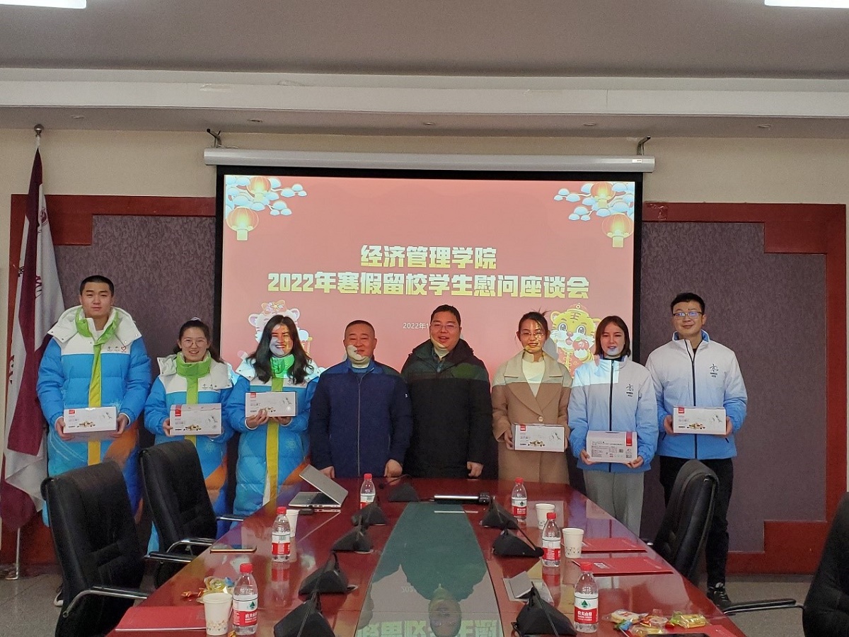 1月31日上午,在除夕之日Beat365官方网站在励学楼201会议室举行2022年寒假留校学生慰问活动,学院院长赵继新、党委书记王伟宾、党委副书记赵洁及留校学生参加了慰问活动。