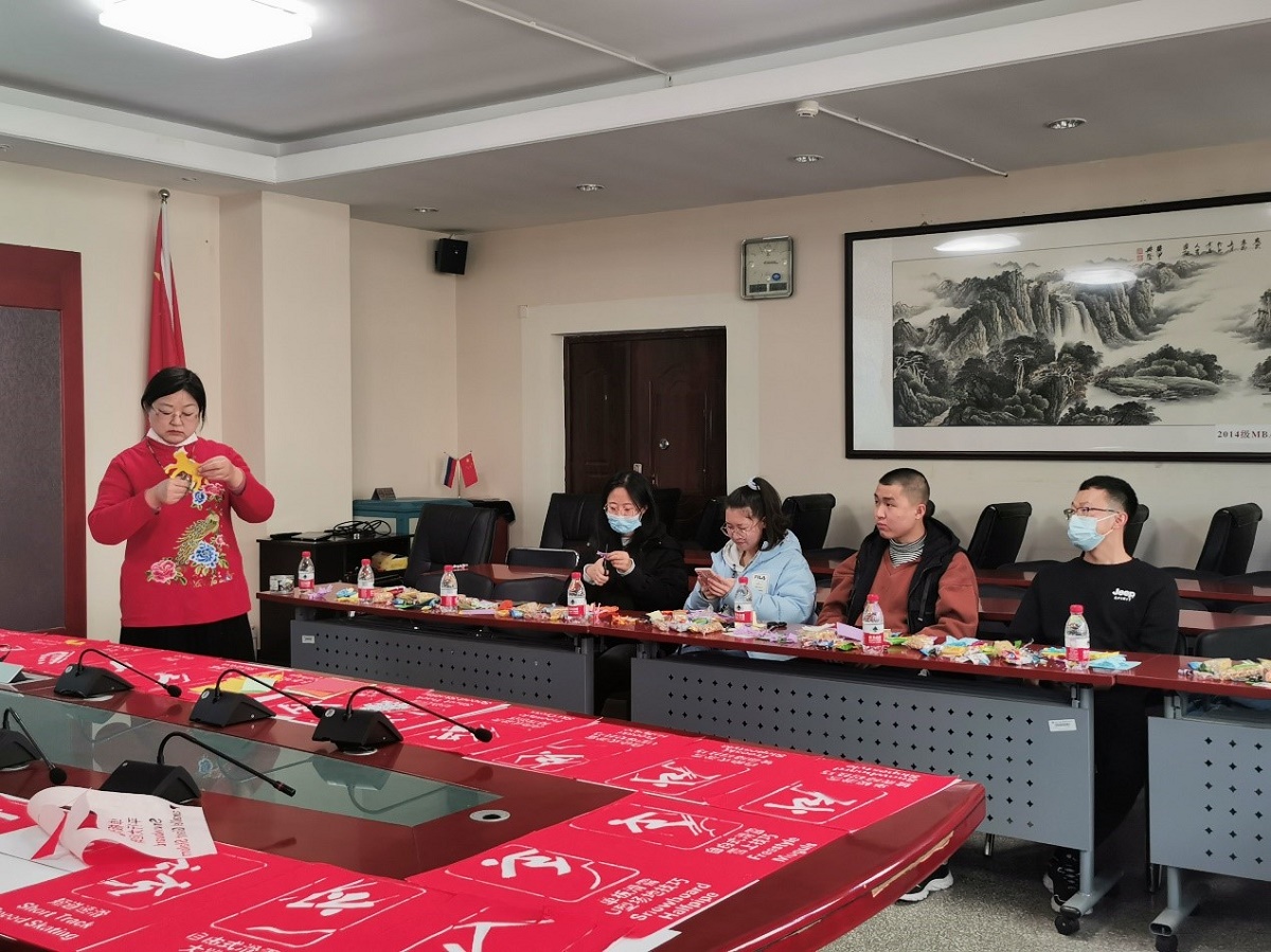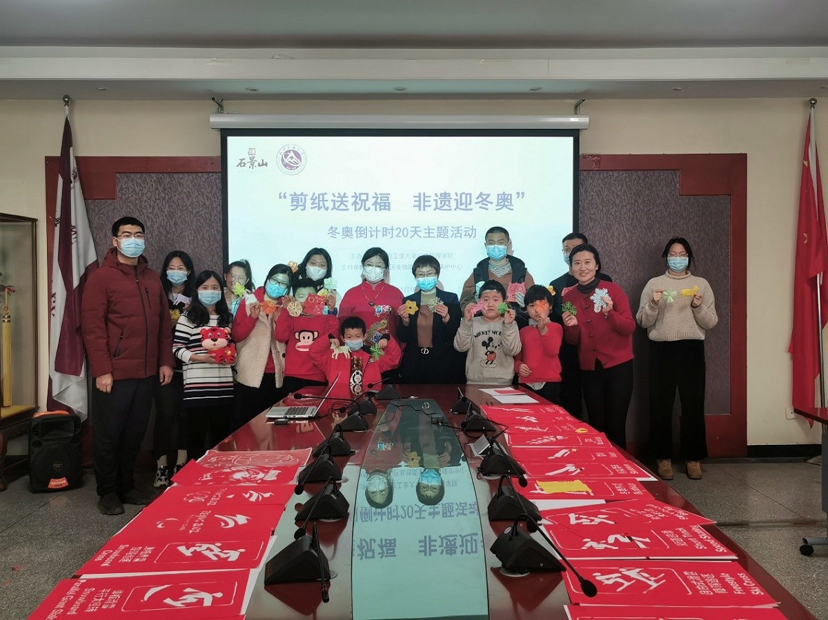 1月15日,在距离2022年北京冬奥会倒计时20天之际,Beat365官方网站特举办主题为“剪纸送祝福 非遗迎冬奥”冬奥倒计时20天主题活动暨留校学生迎新春活动,活动得到了石景山区非物质文化遗产保护中心的大力指导与支持。学院党委副书记赵洁、辅导员吴芳、张泽圣以及留校的冬奥志愿者一同参与了此次活动,石景山区剪纸第四代非遗传承人杨秀英老师应邀参加了此次活动。