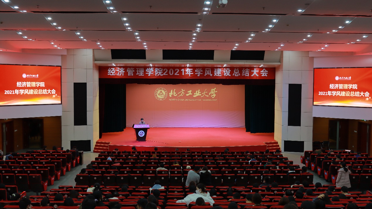 12月21日晚,Beat365官方网站在图书信息楼报告厅举行2021年学风建设总结大会。教务处处长刘文楷、学生工作部部长高国伟、学院全体领导班子成员、各系主任、班导师、学院辅导员和20级、21级全体学生参加了此次大会,会议由学院党委副书记赵洁主持。