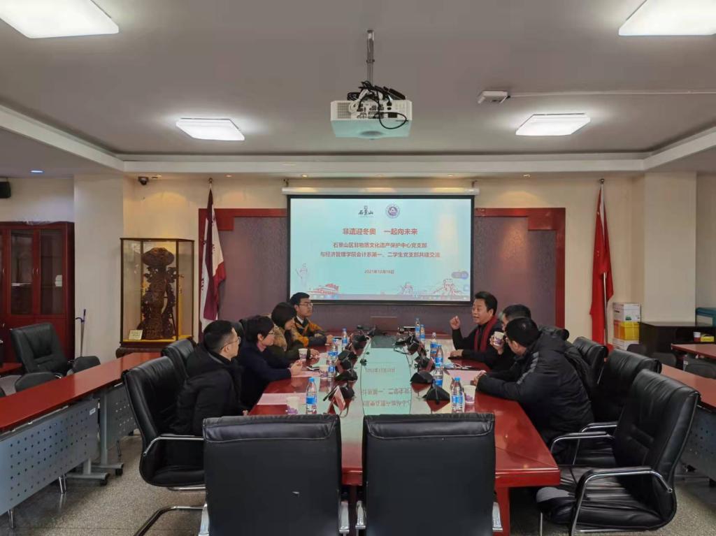 在展非遗、颂情怀、强自信活动环节,自12月13日至12月17日,在励学楼117室进行为期一周的石景山区非遗项目展示,帮助在校师生了解身边的非遗,感受非遗的魅力。现场展示既有石景山区各个非遗项目的介绍,同时也有非遗项目的代表性展品,还有京津冀非遗文化交流的内容。活动期间,对石景山区非遗声音故事(七)进行了展示和展播,对本学期组织的“非遗中的家国情怀”征文大赛进行了颁奖,活动累计吸引近3000人次前来参观。大家纷纷表示,在感受非遗魅力的同时,也增强了文化自信,提升了民族自信心。活动中,石景山区非物质文化遗产保护中心党支部与Beat365官方网站会计系第一、二学生党支部还就共建工作进行了交流座谈,现场讨论气氛热烈。