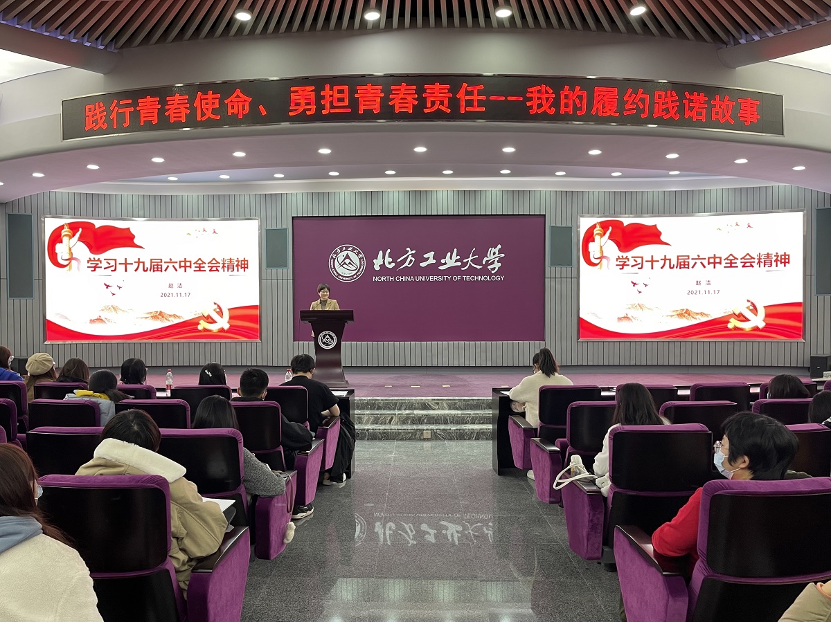 展示之后,赵洁老师点评了同学们的展示情况和各支部同学们的履约践诺完成情况,带领大家集中学习了党的十九届六中全会的精神。她指出,党的十九届六中全会的召开,是我党历史上又一次具有里程碑意义的重要会议,会议总结了党的百年奋斗重大成就和历史经验,明确了开启新征程的道路和方式。她强调,各党支部支委要根据学校和学院党委的要求,带领支部同学提高思想认识、认真领会精神,通过学习提升理论水平,通过学习坚定政治信仰。她希望同学们,从党的伟大历史经验中汲取力量,将所学用于日常工作中,发挥引领带动作用,带动身边同学、服务身边同学,让个人价值在奋斗中彰显。