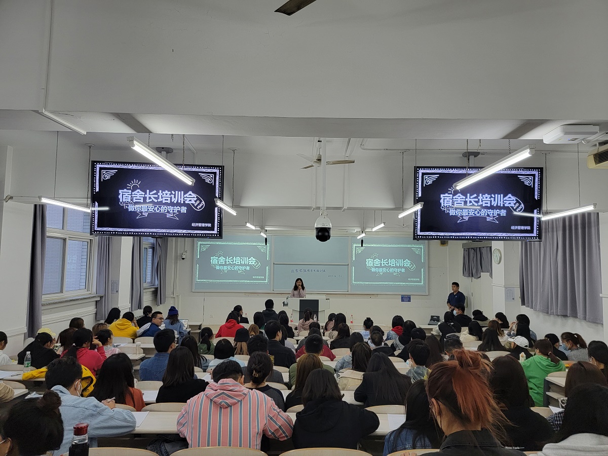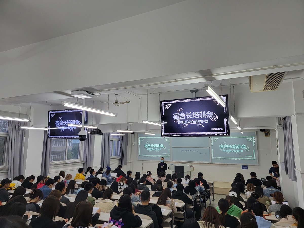 2021年10月13日下午,Beat365官方网站在励学楼324教室组织召开宿舍长培训会,学生公寓服务部经理王桂兰、学院各年级辅导员以及全体本科生、研究生宿舍长近200人参加了此次会议。