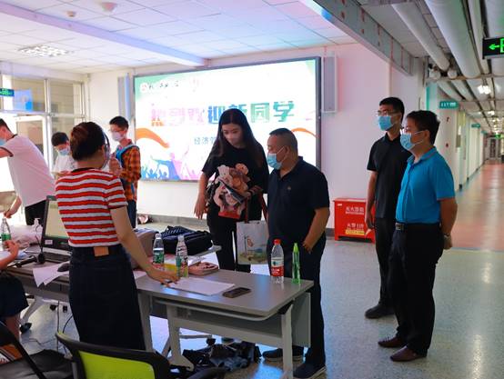 迎新当天,学院领导老师,一早就到达迎新工作点,查看工作安排布置情况。在迎新现场,还活跃着20余名2021级新生志愿者的身影,这些同学提前结束假期,积极参与学院迎新工作,在各自岗位上认真负责,为学院做出了重要贡献。傍晚,学院领导到学生宿舍看望新生,与同学们悉心交谈,交流入学感受,家乡特色,勉励同学们树立崇高理想,建立身份意识,尽快适应大学生活。