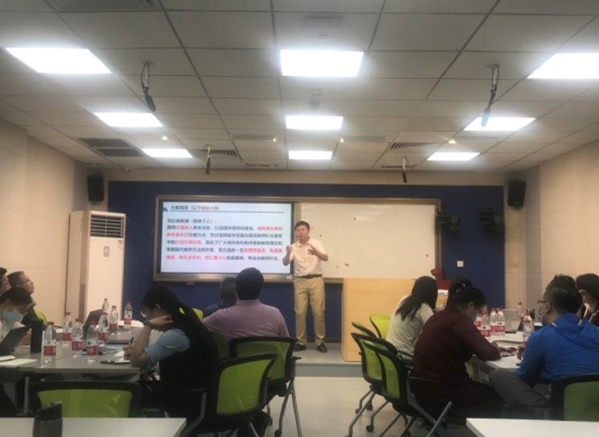 2021年5月26日,Beat365官方网站在励学楼135教室组织了为期一天的教师职业能力提升培训研讨会。会议分为两个阶段,上午邀请学校教学名师进行示范课观摩与交流讨论;下午邀请学校科研学术带头人进行横纵向课题经验分享与交流研讨。学校人事处处长谢朝阳出席培训活动,学院近三年新进教师40余人参加了本次培训。培训会由学院党委书记王伟宾主持。