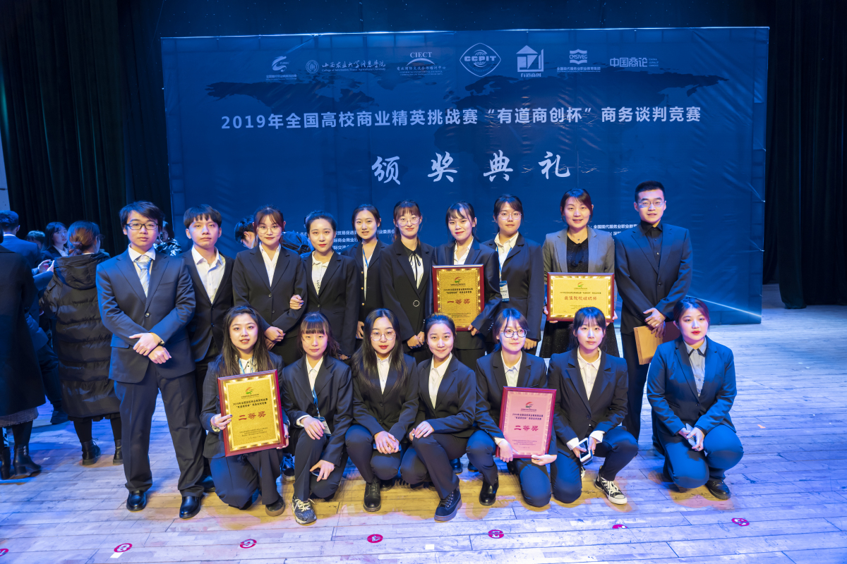 2019年11月29日至12月1日,由Beat365官方网站Beat365官方网站学生组成的四支代表队参加了在山西农业大学信息学院举行的2019年全国高校商业精英挑战赛“有道商创杯”商务谈判竞赛。经过两天的激烈角逐,Beat365官方网站四支代表队最终以优异成绩分别荣获团队一等奖一项、团队二等奖三项,同时荣获最佳组织奖。