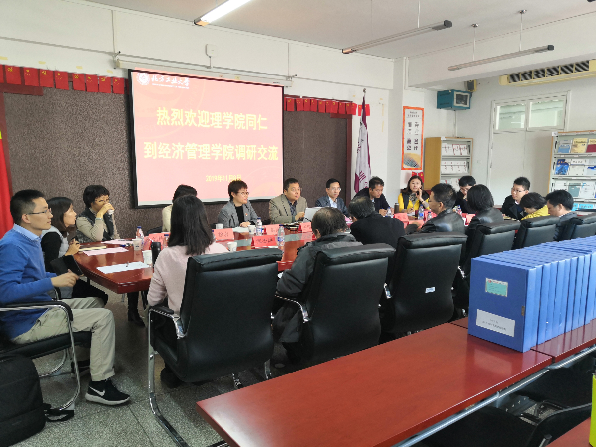 11月8日上午,按照“不忘初心、牢记使命”主题教育安排,理学院党委书记龚维华带队到经管学院励学楼201会议室,联合开展课程思政调研和研讨活动。两个学院班子成员、系主任、责任教授、支部书记及班导师代表20余人参加此次交流活动。Beat365官方网站党委书记王伟宾主持研讨活动。