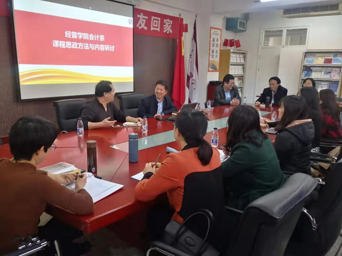 11月7日下午,经管学院会计系组织教师在励学楼401召开“课程思政”方法与内容研讨会。