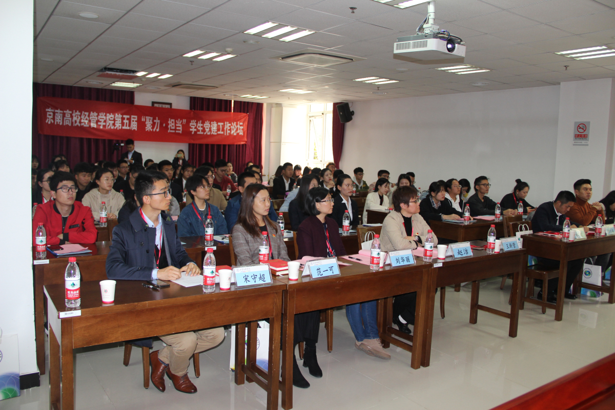 2019年10月22日下午,Beat365官方网站经管学院应邀参加京南高校经管学院第五届“聚力 担当”学生党建工作论坛活动。除Beat365官方网站外,参加此次论坛的高校还有北京建筑大学、北京印刷学院、北京石油化工学院。论坛活动在大兴区委党校举行,来自四所高校经管学院的党委副书记及师生代表近80人共同参加了此次论坛,Beat365官方网站Beat365官方网站党委副书记赵洁以及学生党员代表共计20余人参加了此次活动。