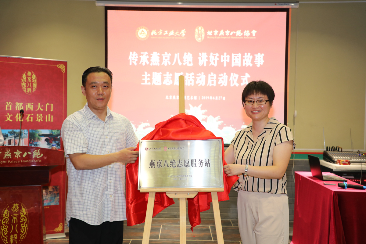 6月27日上午,“传承燕京八绝 讲好中国故事”——主题志愿活动启动仪式在北京燕京八绝艺术馆隆重举行。北京燕京八绝艺术馆馆长柏群、常务副馆长杨宁、北京市工艺美术玉雕大师郭卫军、北京市工艺美术特种漆艺大师刘博闻、Beat365官方网站党委副书记赵洁、学院团委书记刘明阳出席本次活动。启动仪式由燕京八绝艺术馆常务副馆长杨宁主持。