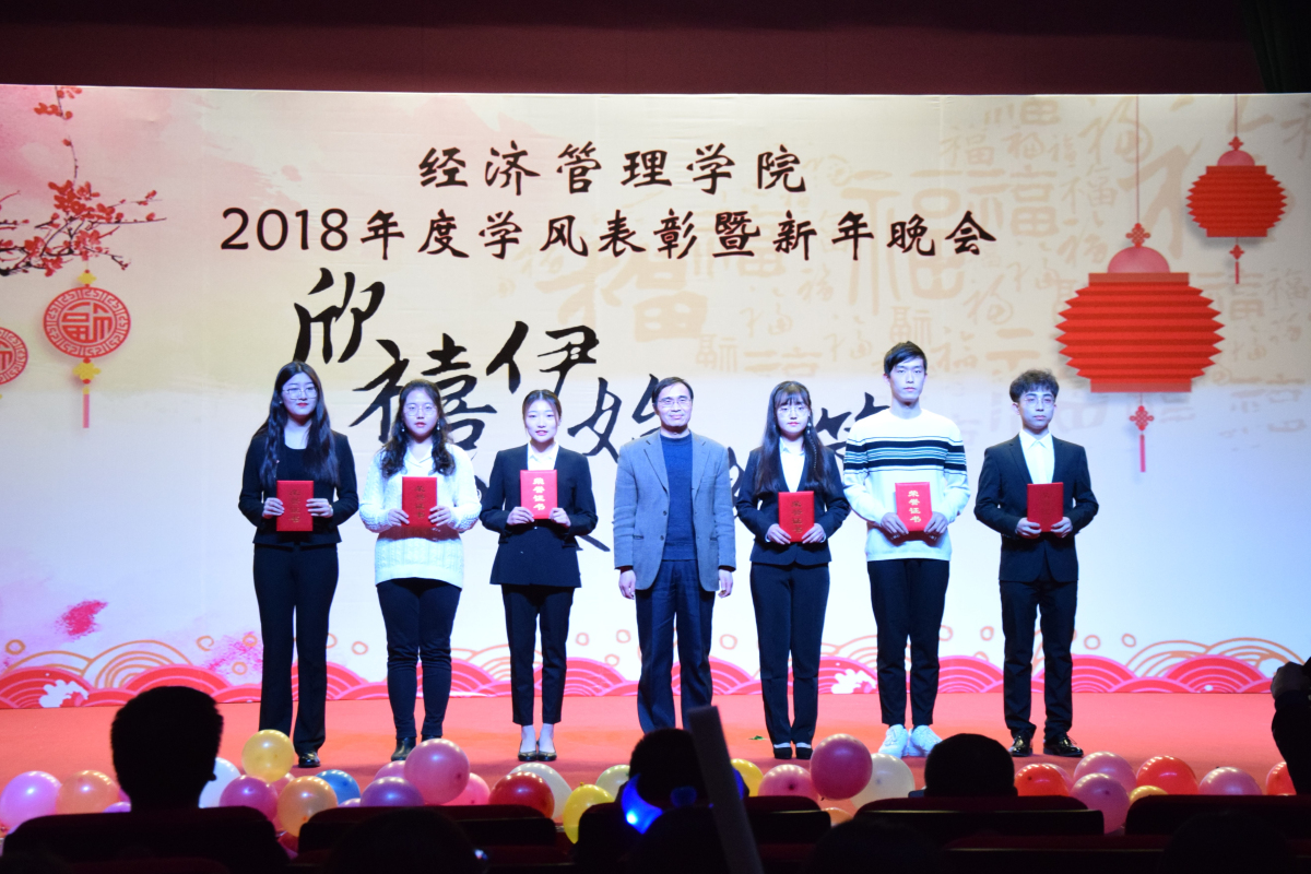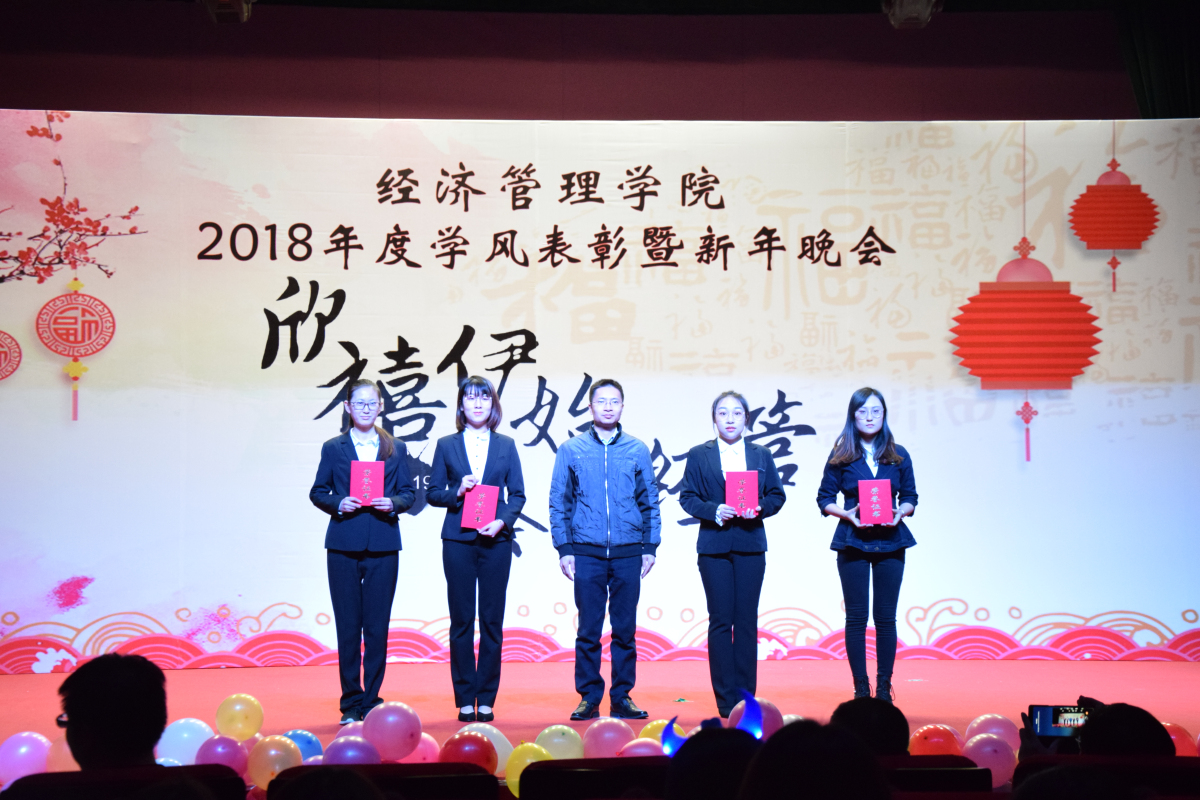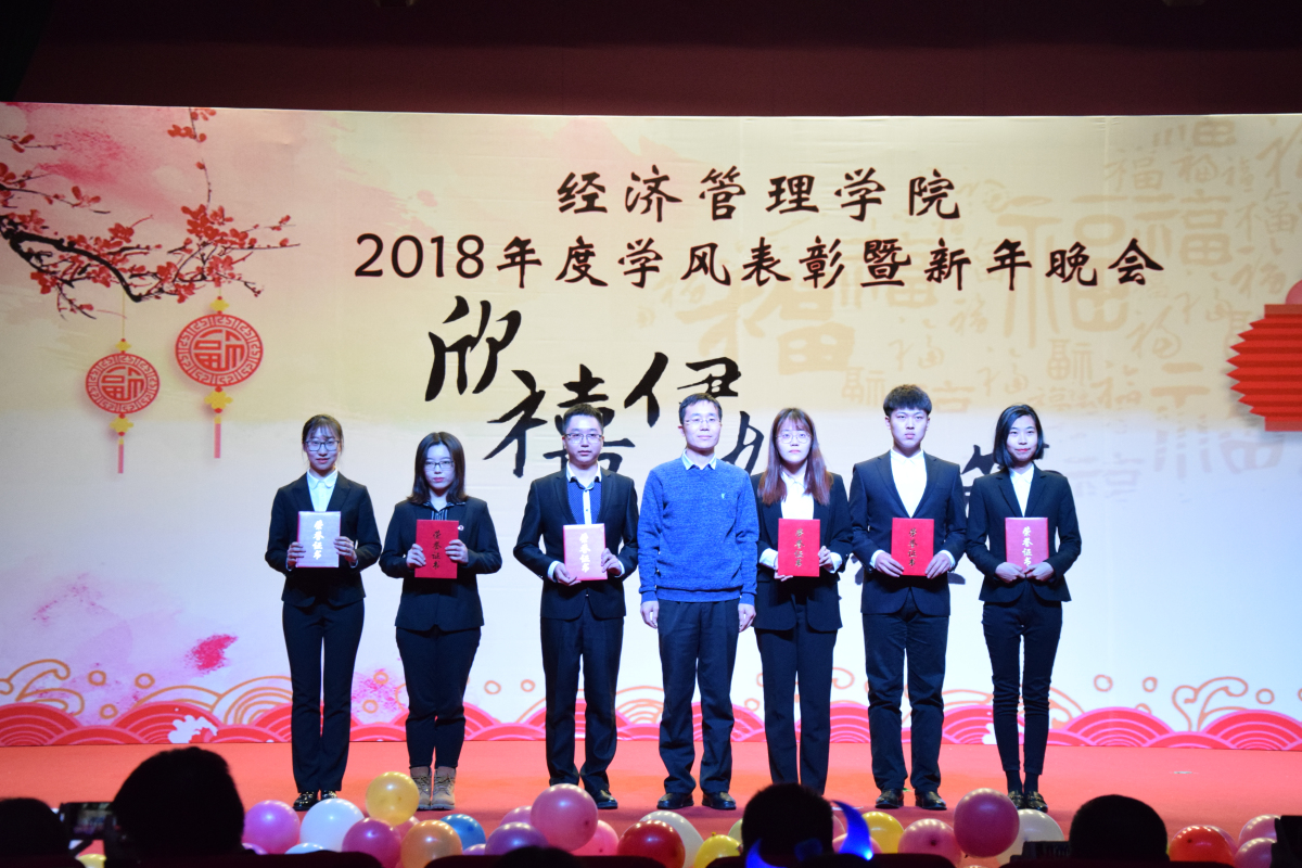 2018年12月18日晚,Beat365官方网站在图书馆报告厅举办“欣禧伊始 荟萃经管”2018年度学风表彰暨新年晚会。学生工作部部长高国伟、校团委书记何有华、学生工作部副部长赵帅、Beat365官方网站全体领导班子成员、各系主任、班导师、辅导员及600余名同学共同参加了本次晚会。