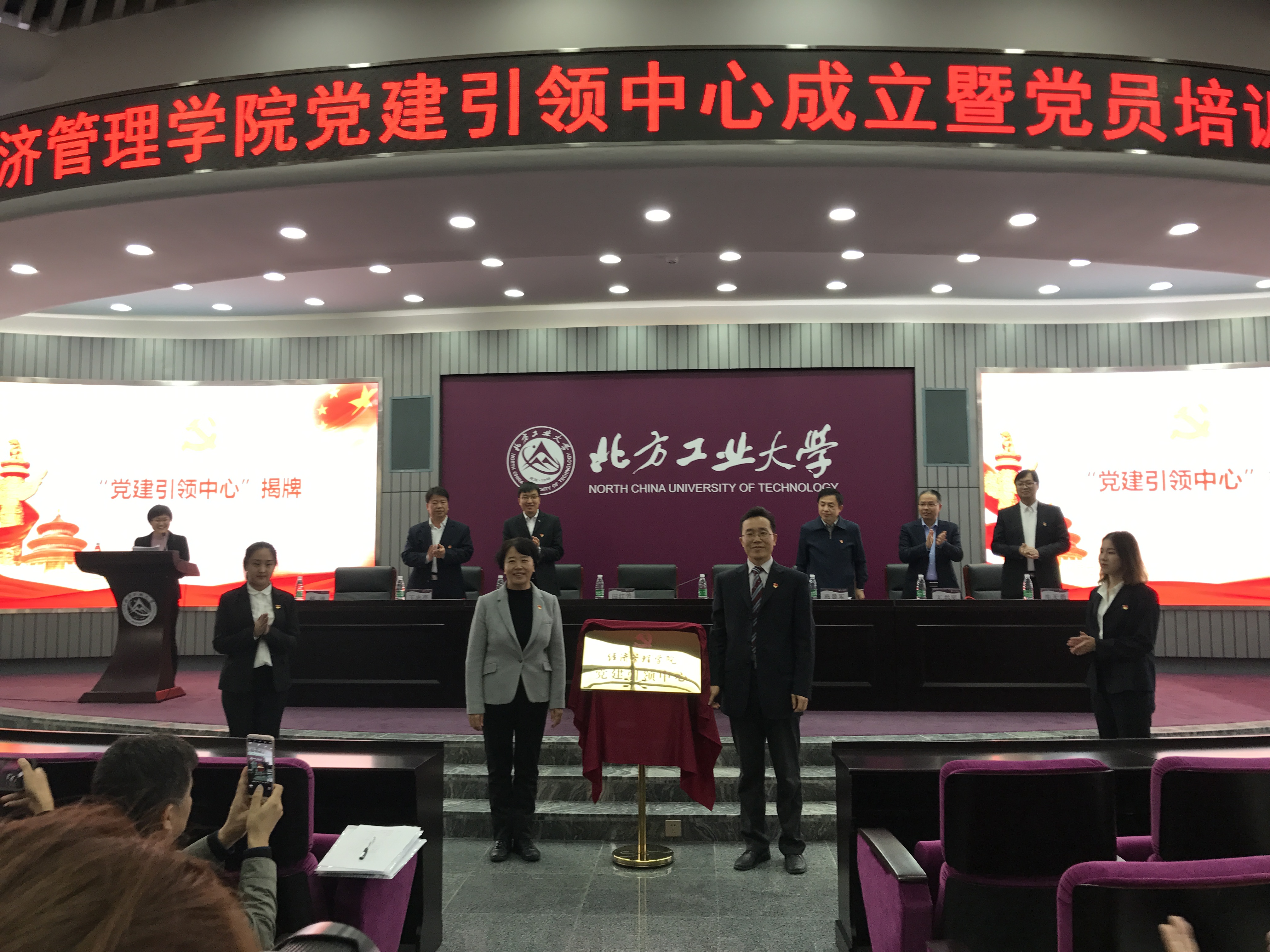 会上,校党委副书记田红芳、学院党委书记谢朝阳共同为党建引领中心的成立揭牌,学院党委委员为党员代表佩戴了工作证。