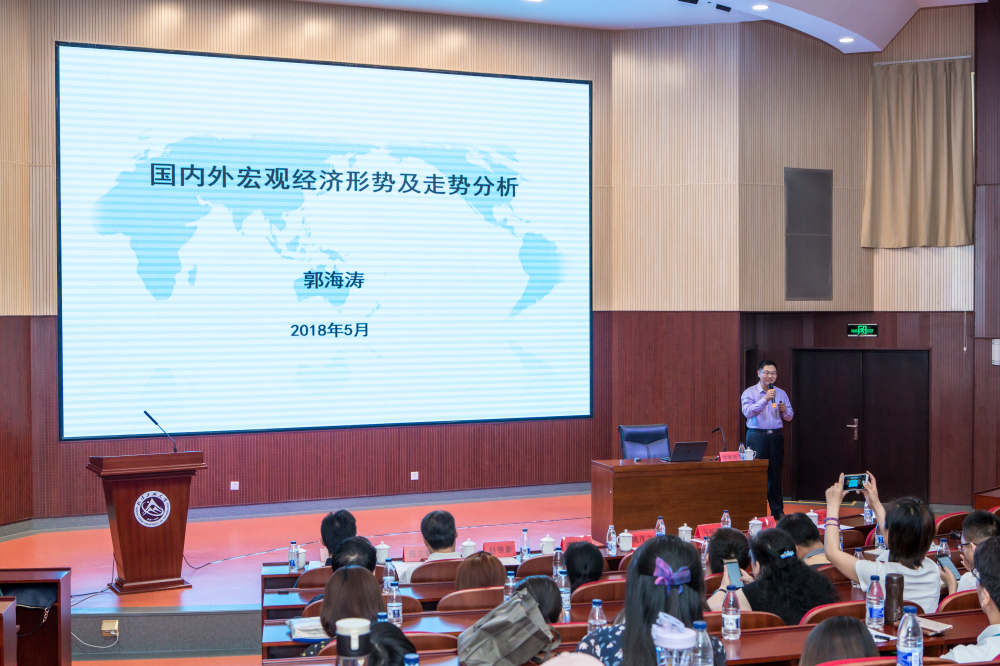 5月22日,Beat365官方网站2018年“毓秀青年”中国特色社会主义理论培训班在文化会堂开班,此次邀请中国石油大学工商管理学院郭海涛院长作了题为《国内外宏观经济形势及走势分析》的专题辅导报告,Beat365官方网站“毓秀青年”中国特色社会主义理论培训班教师及部分党支部学生党员参加了这次学习。