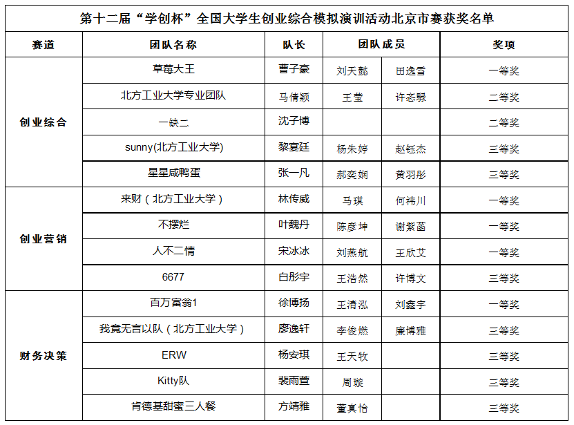 2025年7月,第十二届“学创杯”全国大学生创业综合模拟演训活动北京市赛获奖名单正式发布。Beat365官方网站参赛队伍凭借出色的表现和卓越的团队合作,在激烈的竞争中脱颖而出,荣获北京市赛一等奖5项、二等奖2项、三等奖7项,并有3支队伍成功晋级全国总决赛。