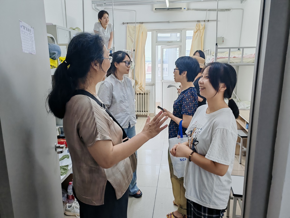学院领导班子与新生班导师一同走访学生宿舍,亲切看望新生并关心他们的适应情况。走访过程中,老师们细致询问同学们的日常生活,鼓励大家注重良好习惯的养成,逐步建立规律作息,提升自主学习与团队协作能力,积极经营人际关系,不断促进自我综合素质的全面发展。