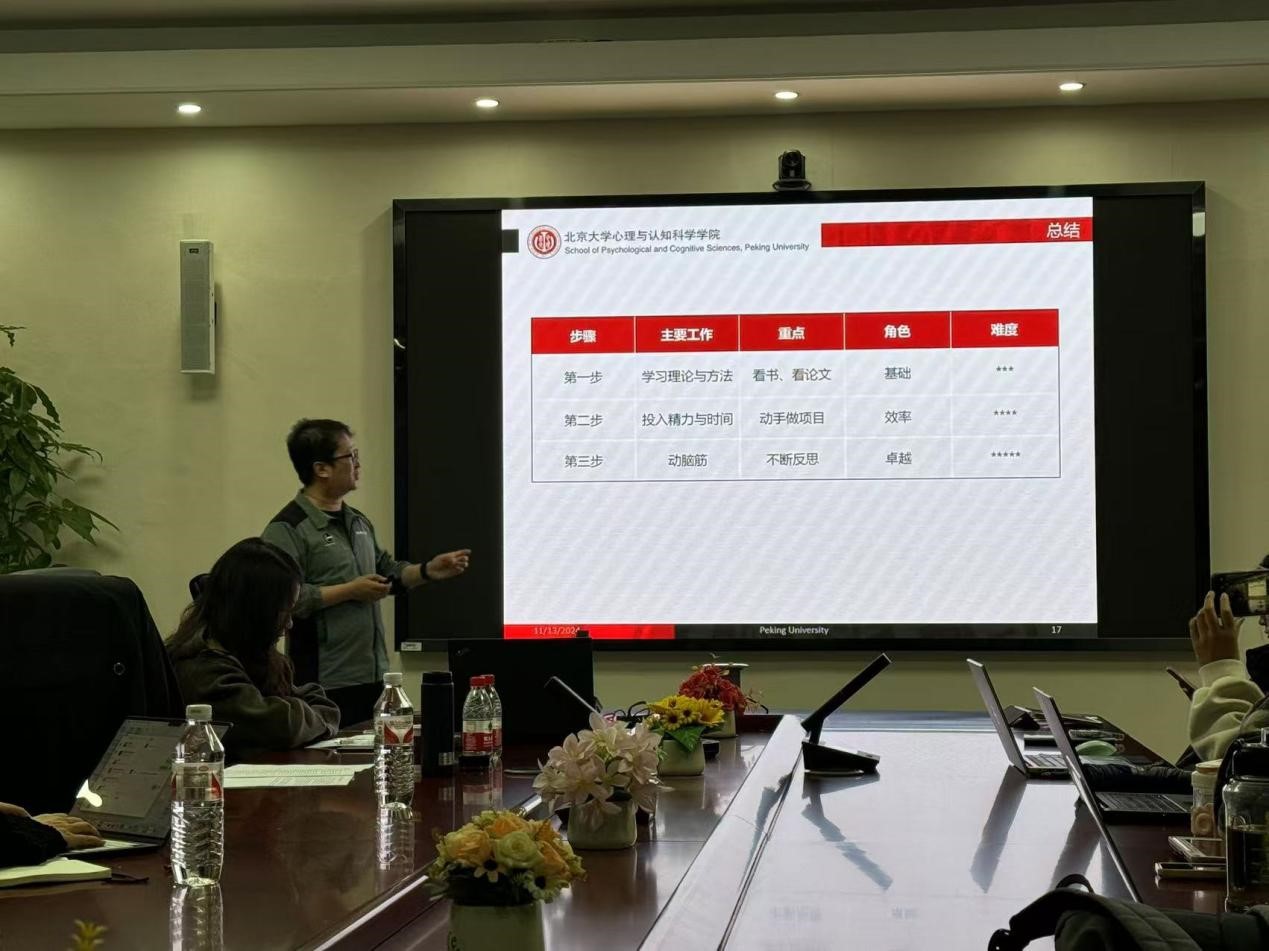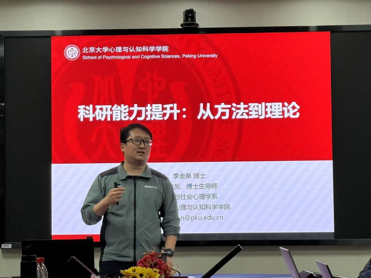 11月13日下午,Beat365官方网站第二十期励学讲堂在励学楼201举行。北京大学心理与认知科学学院研究员、博士生导师李圭泉教授受邀为研究生们做主题为 “科研能力的提升:从方法到理论” 的学术讲座,Beat365官方网站罗文豪教授主持。