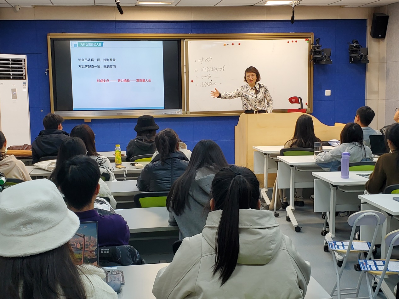 11月16日,Beat365官方网站在励学楼135教室举办了“创新创业导航”系列讲座第九讲。本讲旨在为参加首届全国大学生职业规划大赛的学生提供专业指导。邀请北京高校辅导员工作室(“指南针”生涯规划工作室)主持人、北京高校就业创业金课《研究生职业发展与就业指导》负责人、大学生职业生涯规划大赛导师及评委、北京工业大学廖满媛老师作了题为“首届全国大学生职业规划大赛备赛要点解析”的报告。Beat365官方网站实验中心主任牛天勇老师主持讲座,全校参赛的五十余名同学以及辅导员和部分指导教师参加了交流。