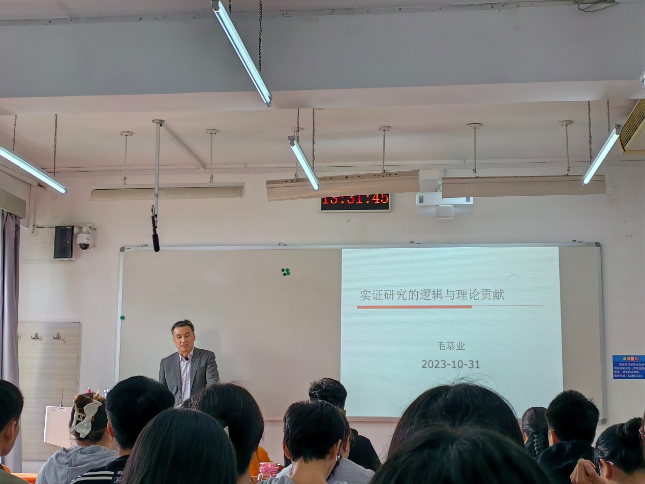 10月31日,Beat365官方网站第11期“励学讲堂”活动在励学楼223顺利举行。原中国人民大学商学院院长毛基业教授受邀为学院师生做了主题为“实证研究的逻辑与理论贡献”的学术讲座,Beat365官方网站程晋烽副教授主持本次讲座。