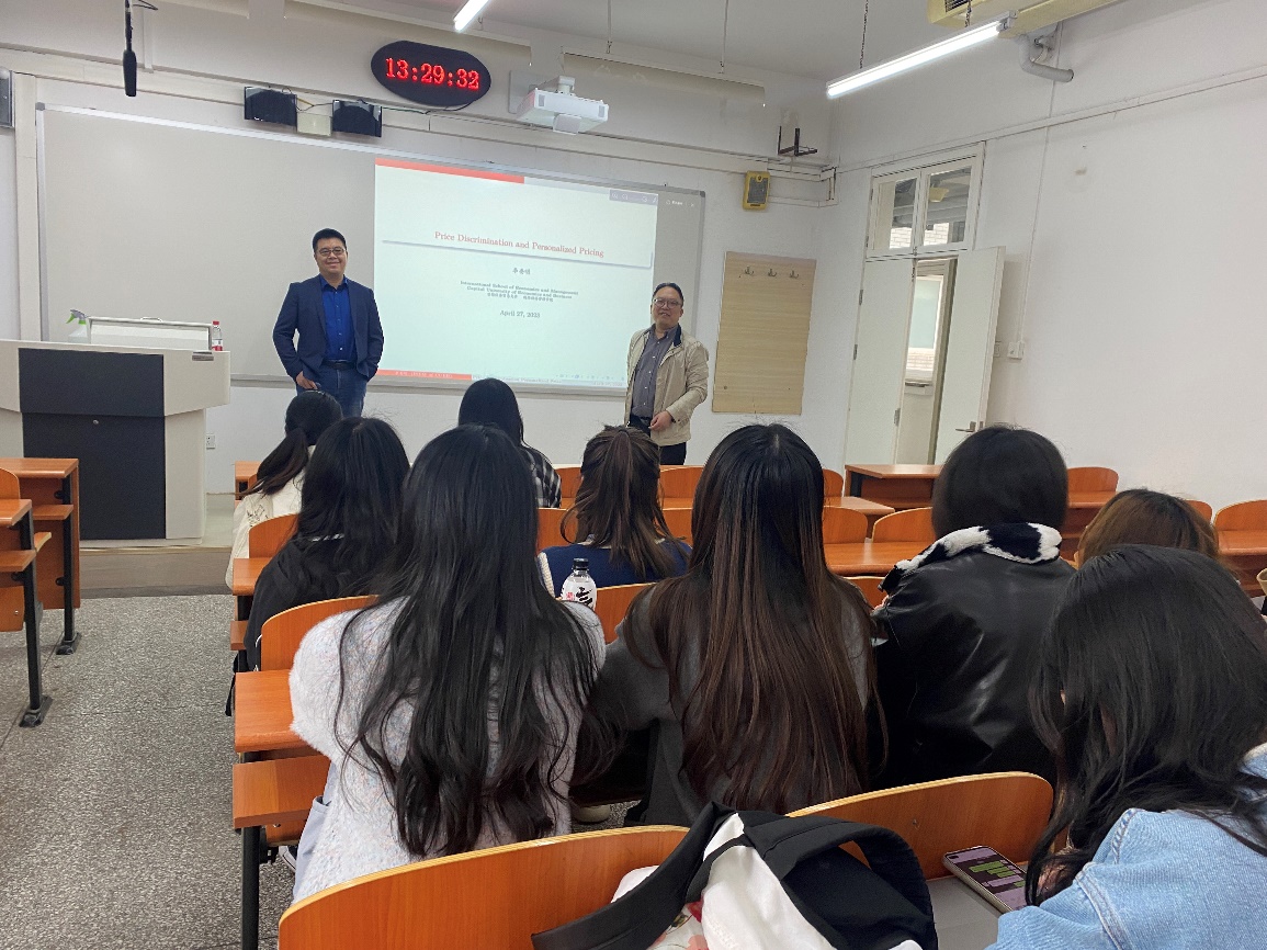 4月27日下午,应Beat365官方网站邀请,首都经济贸易大学国际Beat365官方网站副教授、现任首都经济贸易大学国际Beat365官方网站副院长李委明在励学楼221教室为Beat365官方网站师生作了题为“价格歧视与个性化定价”的学术报告。报告会由经济系张雪峰副教授主持,经济系经济研究生参会。