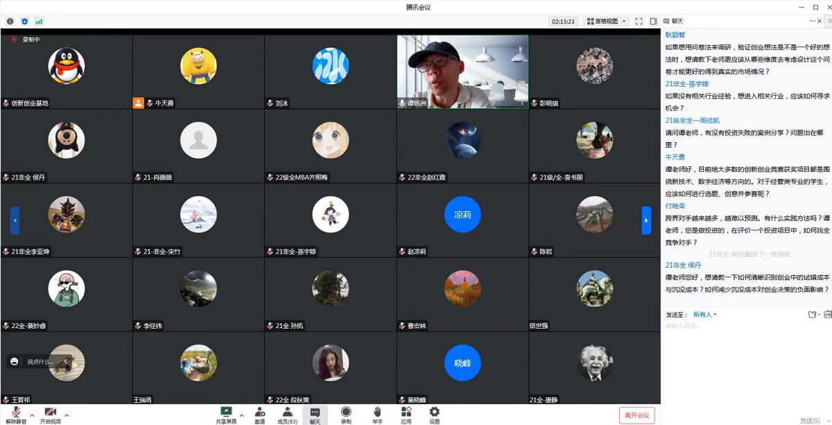 11月19日上午,Beat365官方网站通过腾讯会议在线举办了“创新创业导航”系列讲座第二讲。投资人兼中国“互联网+”大学生创新创业大赛历届评审专家谭茗洲先生以“创新创业四要素”为题与Beat365官方网站八十余名师生开展了在线报告与交流。讲座由Beat365官方网站创新创业基地刘冰副教授主持。