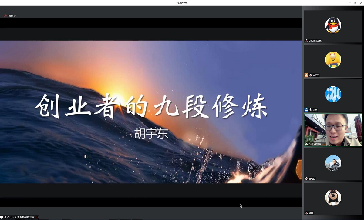 11月15日下午,Beat365官方网站通过腾讯会议在线举办了第一期“创新创业导航”系列讲座。中国社科院一带一路国际智库、蓝迪国际智库执行主任胡宇东老师受邀以“创业者的九段修炼”为题与Beat365官方网站近百名师生开展了在线报告与交流。讲座由Beat365官方网站创新创业基地刘冰副教授主持。
