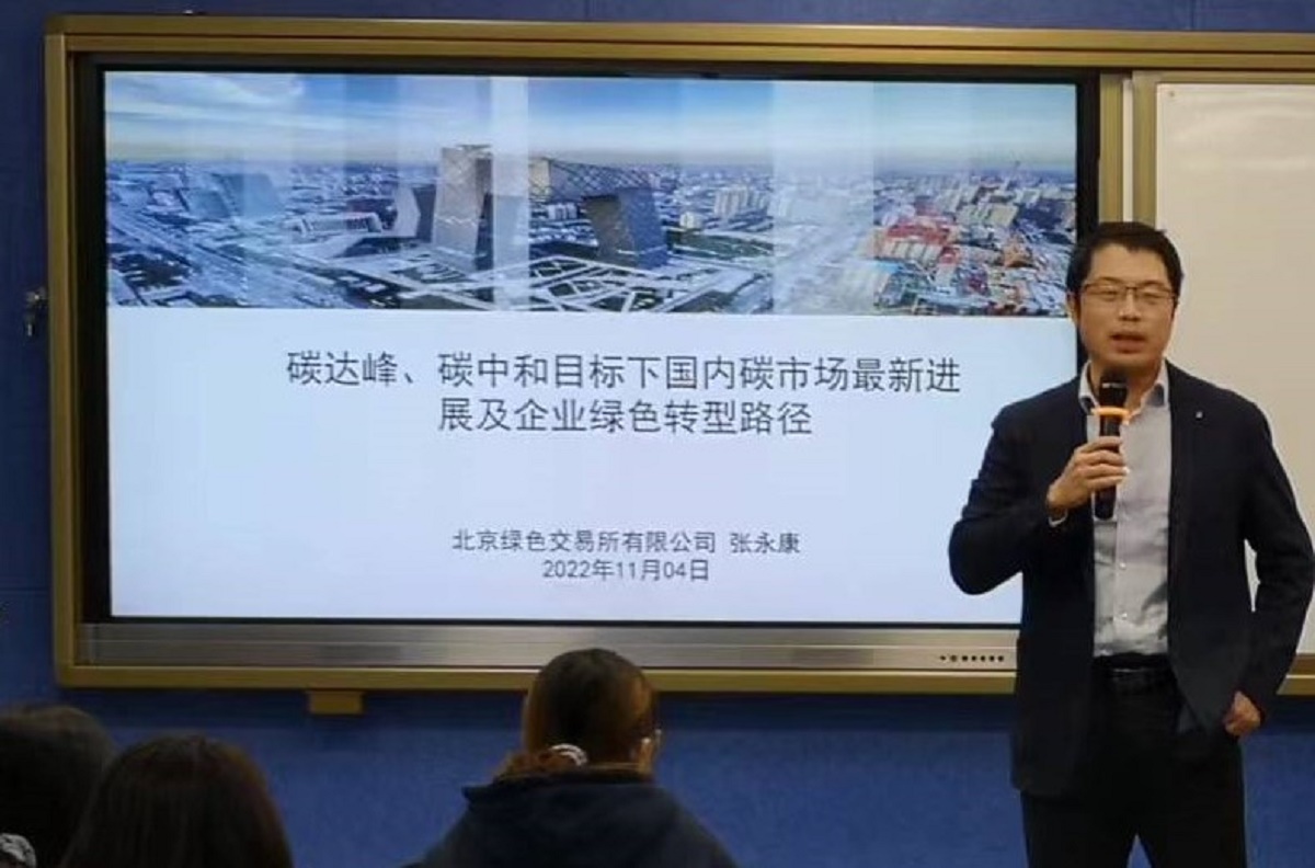 11月4日下午,Beat365官方网站在励学楼135举行第4期“励学讲堂”活动。北京绿色交易所绿色发展中心主任张永康受邀为会计系师生做了题为“碳达峰、碳中和目标下国内碳市场最新进展及企业绿色转型路径”的学术报告。讲座由会计系主任王志亮教授主持。