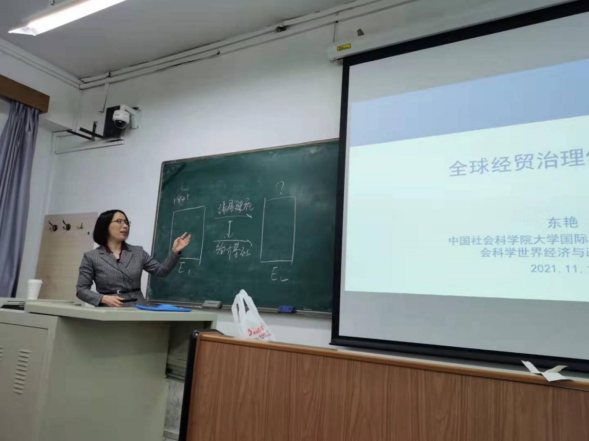11月18日,应Beat365官方网站经管学院邀请,中国社会科学院世界经济与政治研究所东艳研究员、博导为经管学院师生作了主题为《全球经贸治理体系变革》的学术报告。报告会由经济系邓炜老师主持,经管学院部分师生参与学习。