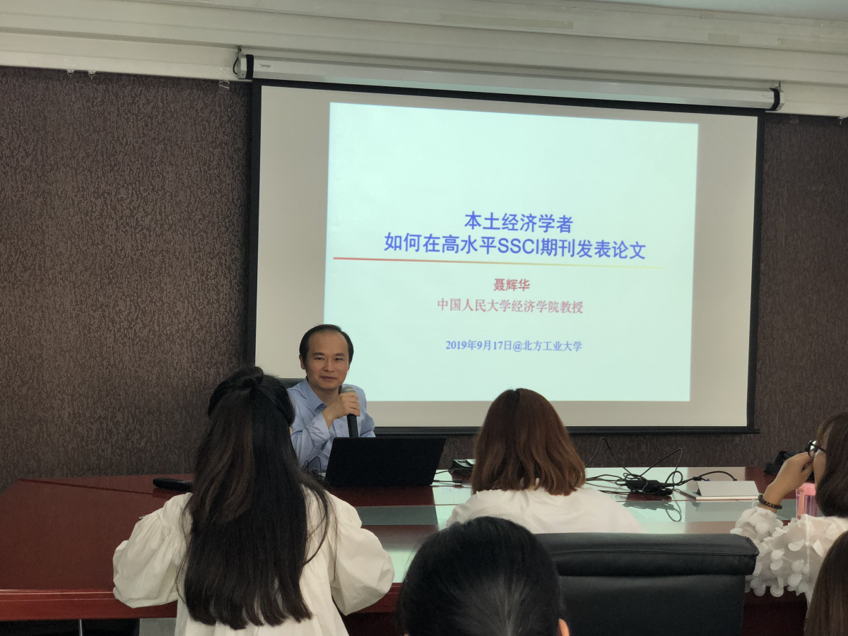 9月17日下午,应Beat365官方网站邀请,中国人民大学经济学院聂辉华教授在励学楼301会议室为Beat365官方网站年轻教师与研究生作了题为“高水平论文的写作与发表”的学术报告。报告会由经济系吴振信教授主持。