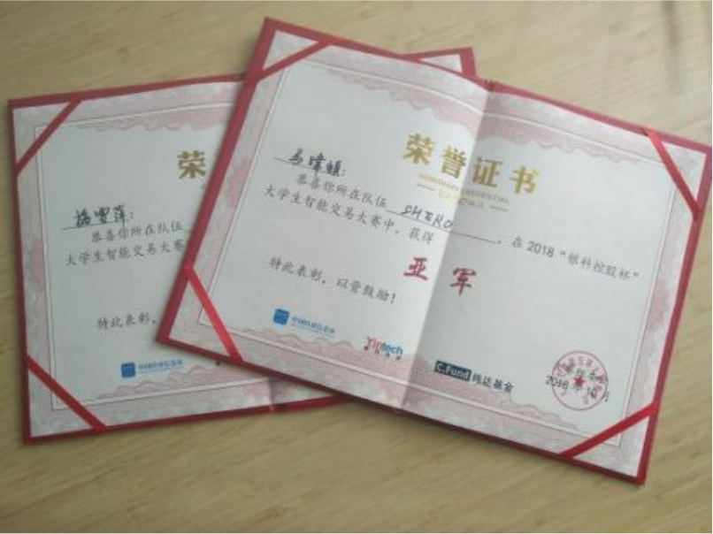 “银科控股杯”智能交易大赛全国亚军、奖金5万元(2018) |