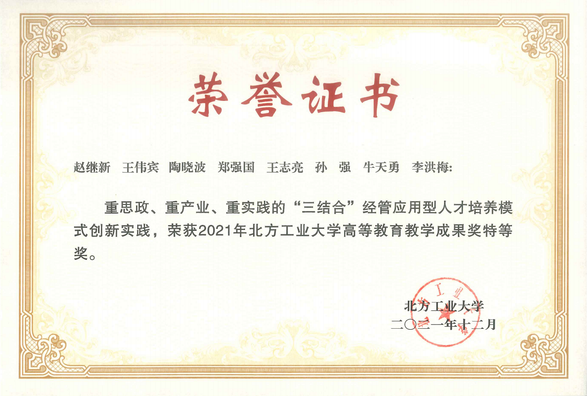 专业教师始终坚持教学第一、学生第一的理念,不断创新教学内容和教学方式,在教学方面取得了丰富成果。其中,专业教师获Beat365官方网站青年教师教学基本功大赛一等奖3次、获批Beat365官方网站一流本科课程3门、获北京市高校“创想杯”多媒体课件制作与微课大赛三等奖1项、获Beat365官方网站教师教学创新大赛二等奖2项,承担教改项目几十项。2021年,团队教师获Beat365官方网站教学成果奖特等奖1项、一等奖1项、二等奖1项、优秀奖4项。