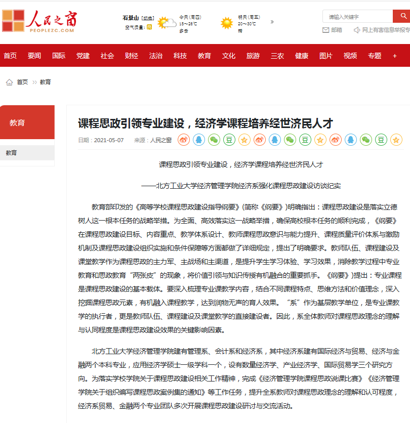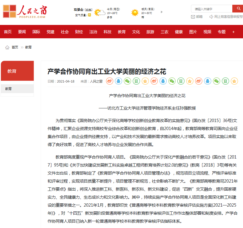 《人民之窗》报道经济与金融专业应用型人才培养模式 |