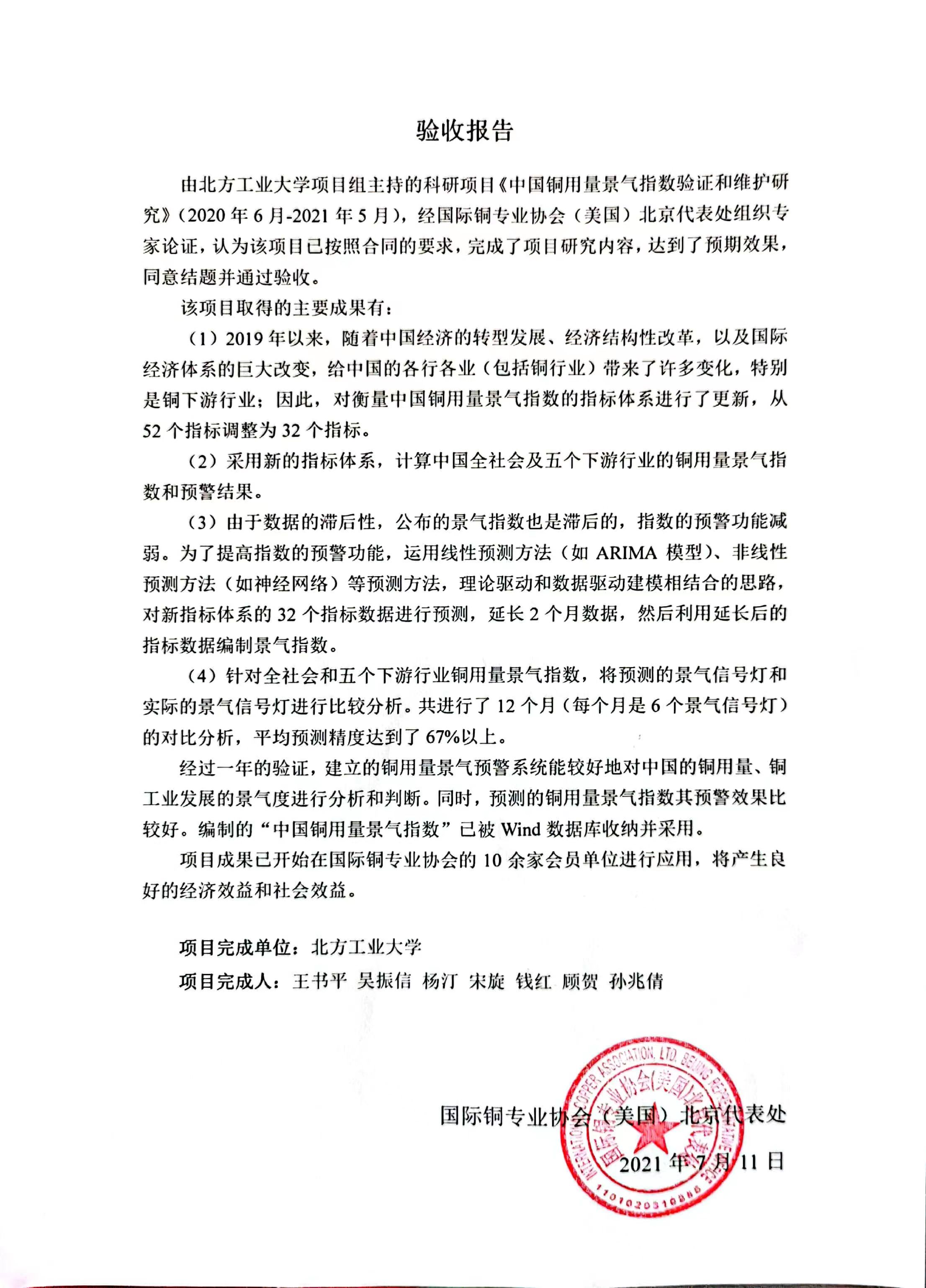 王书平主持编制的“中国铜用量景气指数”被国际铜专业协会采用 |