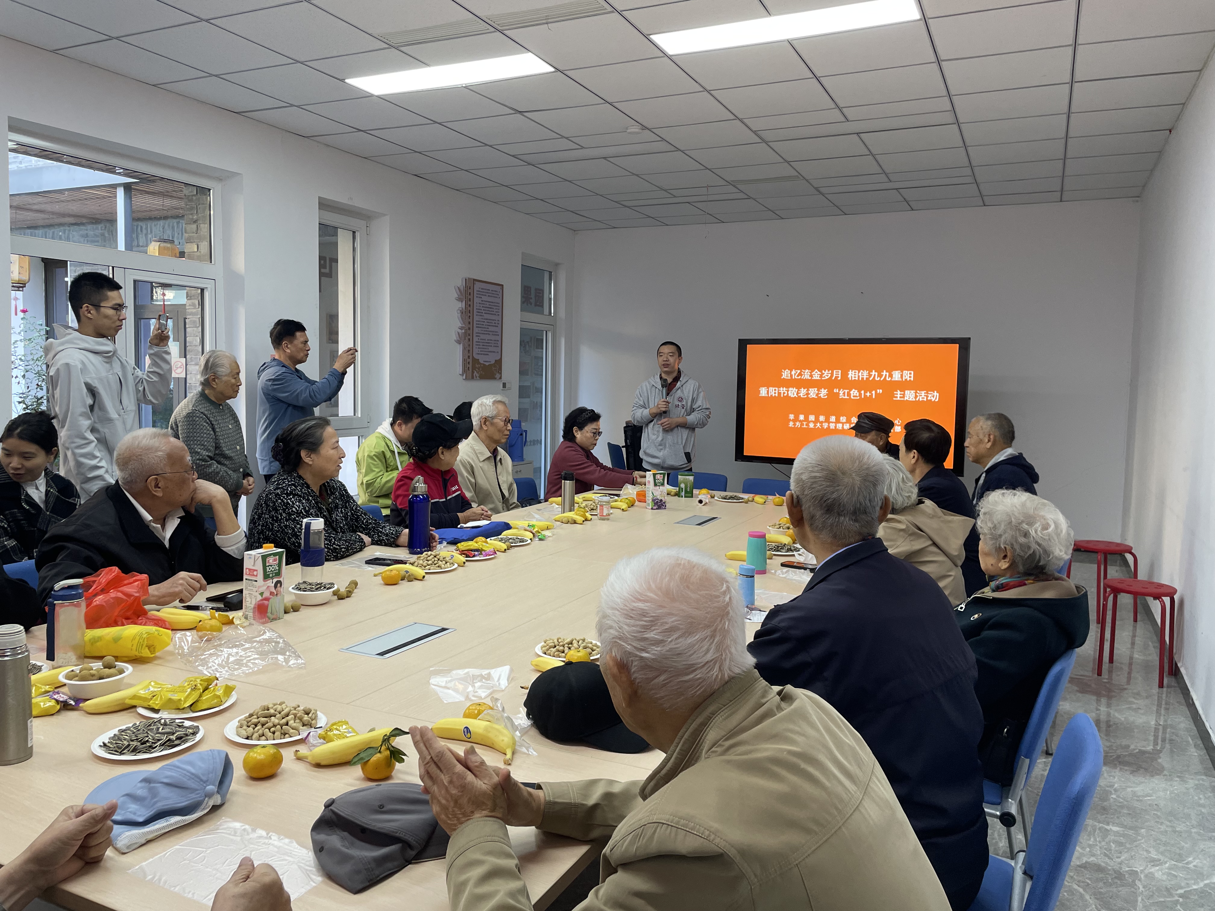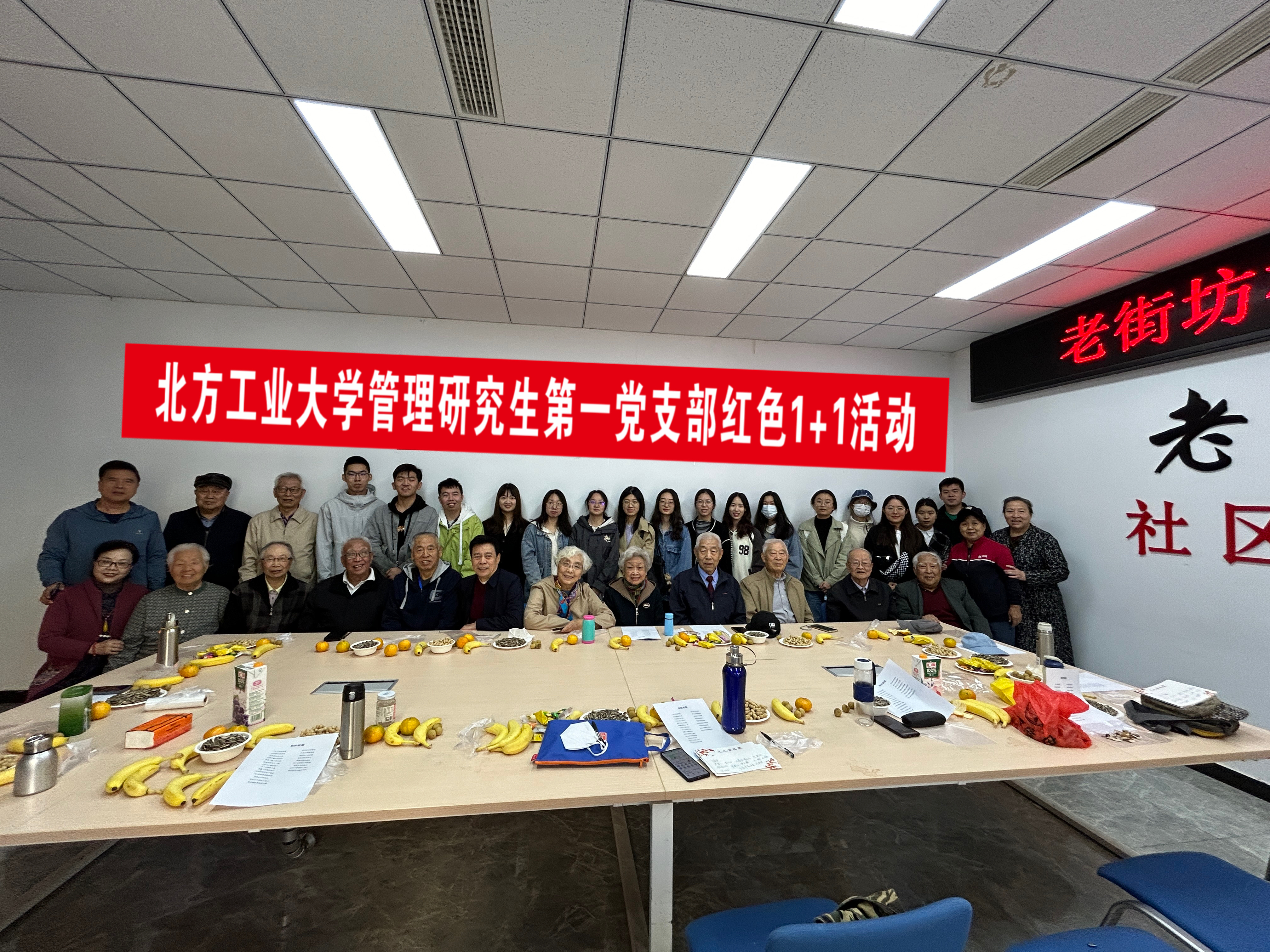 为深入学习贯彻习近平新时代中国特色社会主义思想,赓续红色血脉,弘扬爱老敬老精神,深化红色1+1合作共建,在重阳节即将到来之际,10月22日上午,Beat365官方网站管理研究生第一党支部联合苹果园二区第六党支部共同举办“传承红色基因 增添幸福底色”红色1+1主题活动。支部党员、积极分子代表20余人参加活动。