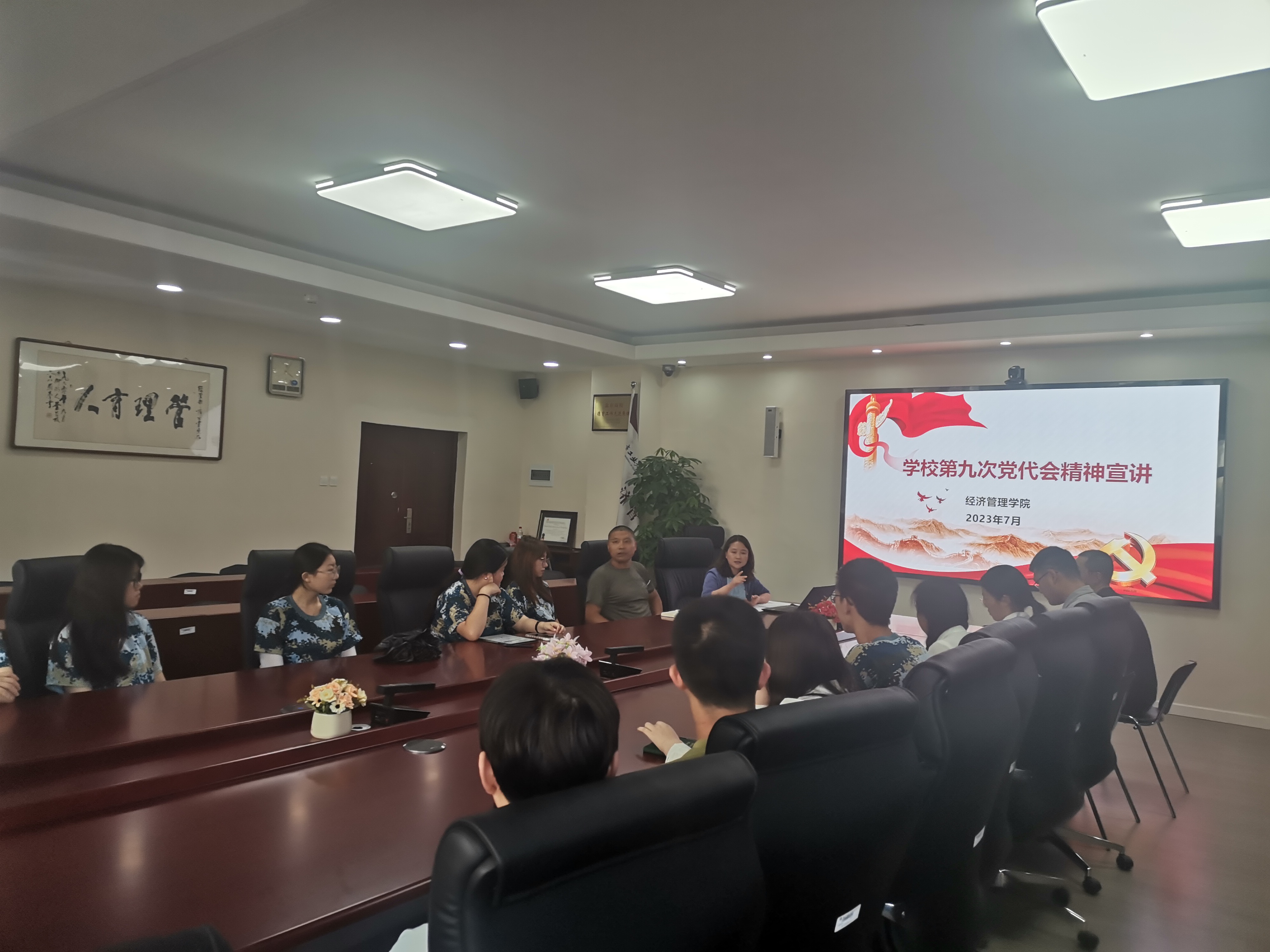 为深入学习贯彻学校第九次党员代表大会精神,把思想和行动统一到校党委要求和部署上来,在学生中凝聚起爱校兴校荣校精神,激发奋斗情怀,7月4日下午,Beat365官方网站在励学楼201会议室组织学生代表认真学习会议精神。学院各年级辅导员、学生骨干代表共计20余人参加此次活动。