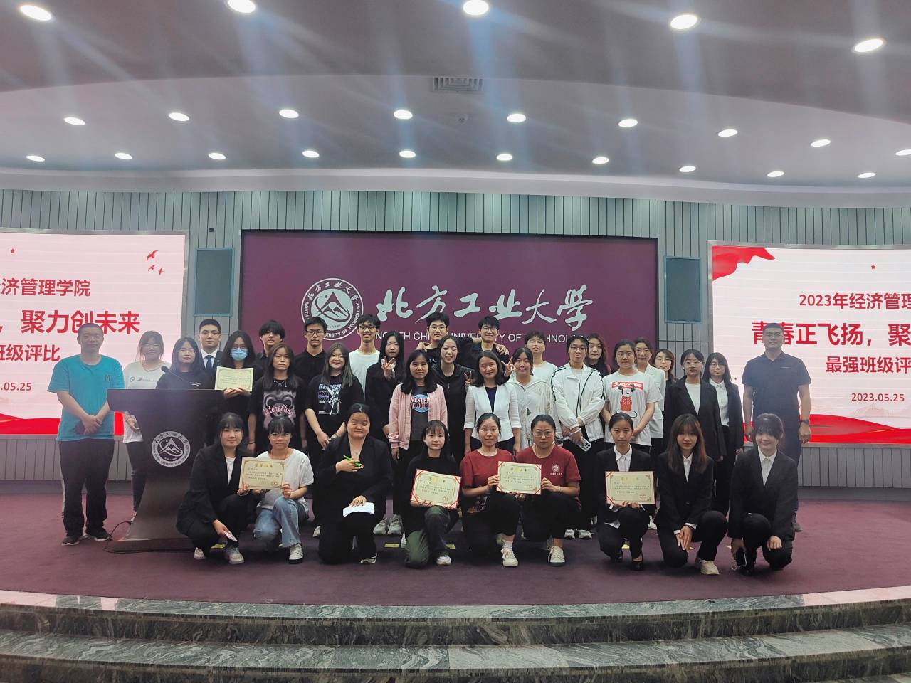 经过评选,会21-3、管22-1、会22-3、金融22-1、国22班等5个班级获评“最强班级”荣誉称号,与会老师为获奖班级进行颁奖。