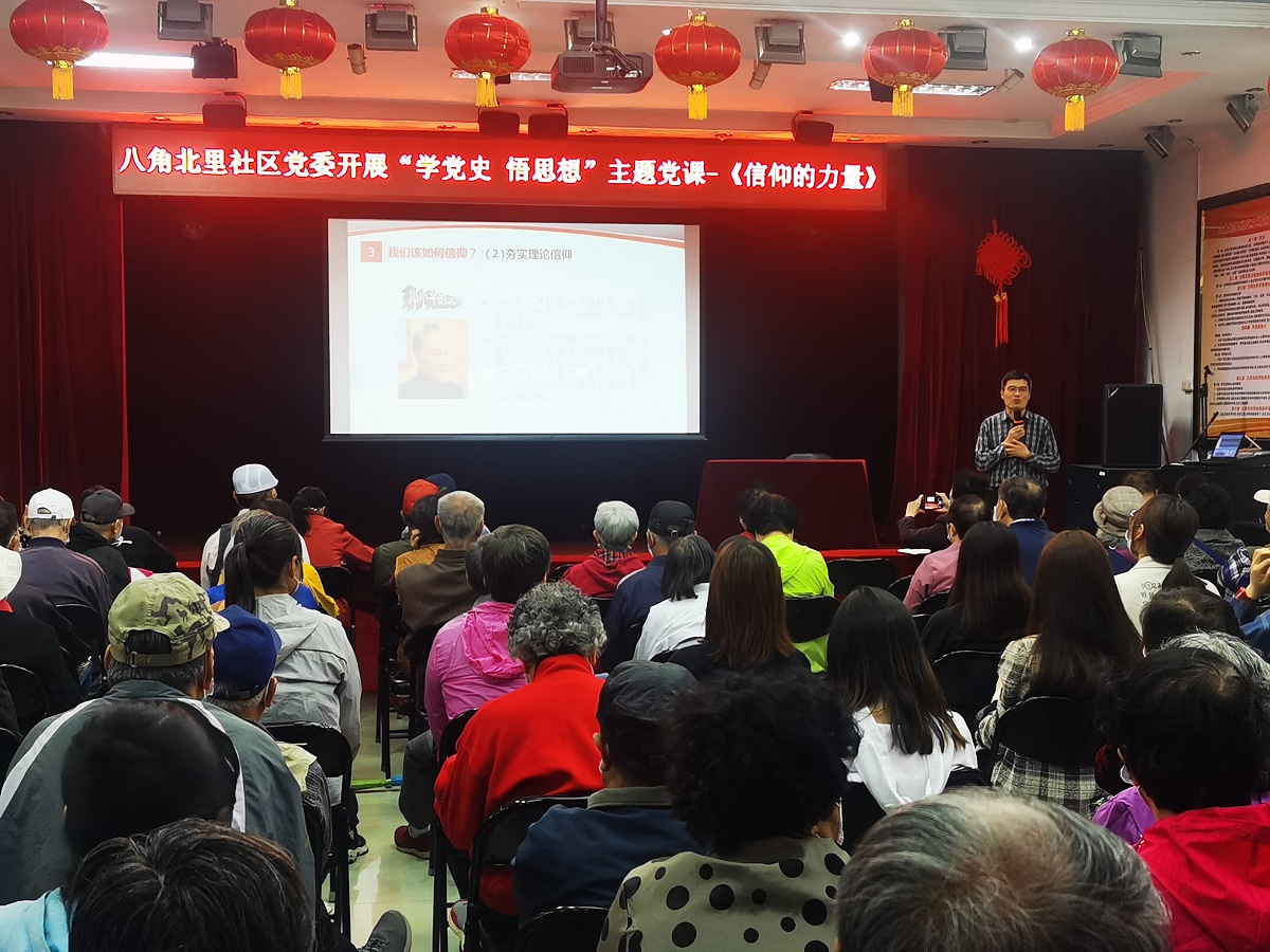 5月15日上午,Beat365官方网站管理系第二学生党支部与八角北里社区党委开展共建活动,活动邀请到Beat365官方网站马克思主义学院党委副书记张茂林老师为两个单位百余名党员作了题为《信仰的力量》主题党课。
