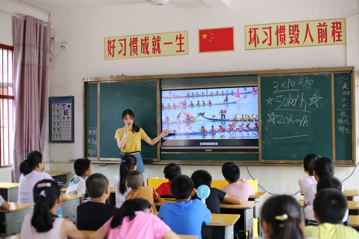 在教学初期支教大学生们发现花塘小学的孩子们缺乏对世界充分了解的途径,实践团本着“教书育人两手抓”的原则和“虽千万里吾往矣”的精神在支教过程中一直坚持言传身教,以身作则,在教孩子们文化知识的同时更在引导孩子们树立远大的志向和目标。鼓励孩子们要先走出农村,再反哺农村,以建设更好的家乡为己任,为祖国的乡村振兴建设贡献新生力量,为中华民族的伟大复兴提供源源不断的动力。