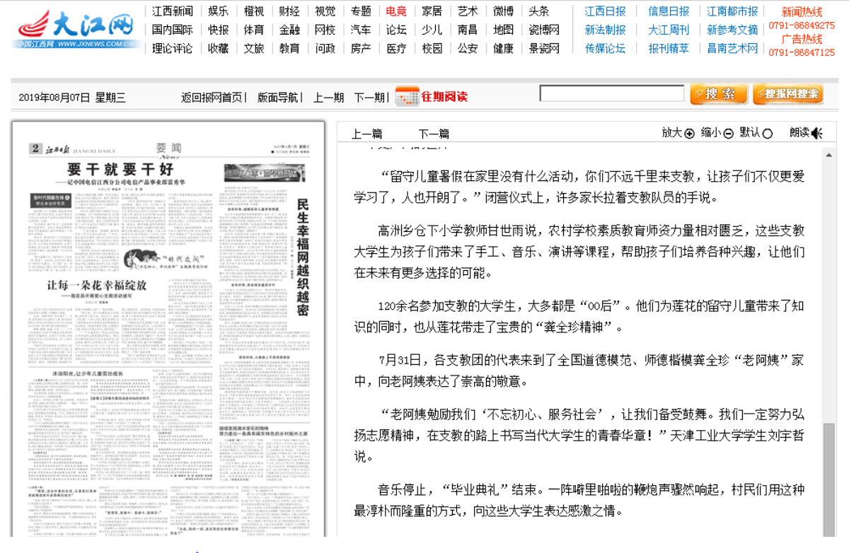 2、江西日报数字报报道莲花县爱心支教活动
