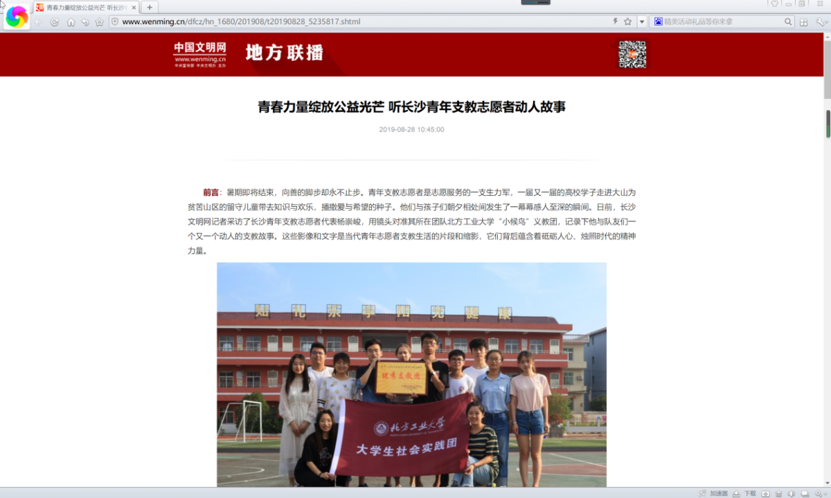 1、中国文明网在线报道“小候鸟”义教实践团