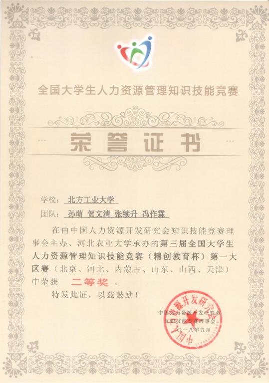 5月5日至6日,在工商管理系魏秀丽、付艳荣和罗文豪老师的组织指导下,我院工商管理专业15级和16级孙萌、贺文清、张旭升、冯作霖四位同学组成“Holly Right”团队,首次代表Beat365官方网站参加第三届全国大学生人力资源管理知识技能竞赛第一大区赛。该比赛由中国人力资源开发研究会主办,为全国性重要赛事,吸引了近300高校队伍参赛,包括分区赛和总决赛两个阶段。