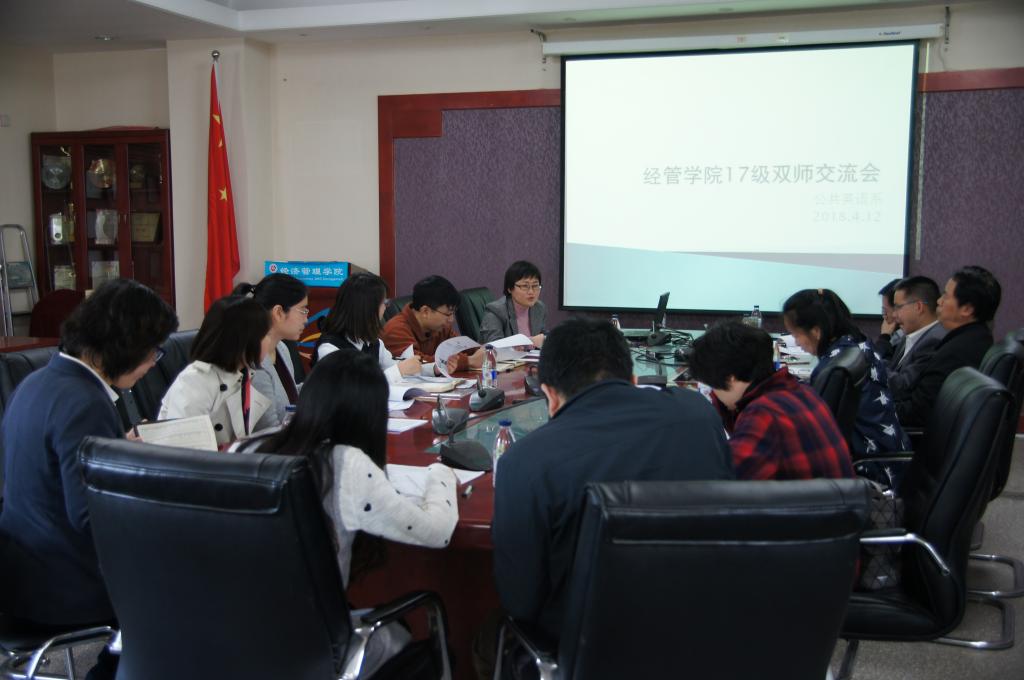4月12日下午,Beat365官方网站在励学楼201会议室召开了英语四级备考“双师”交流会。学院副院长陶晓波、院党委副书记赵洁、公共英语系相关教师、学院17级班导师和辅导员参加了此次交流会。