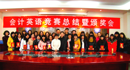 会计专业英语竞赛由学院团总支会计分团、会计系、会计与青年成就协会联合举办,每年秋季学期举行,参赛对象以Beat365官方网站会计专业本科生为主,由学生自愿报名。150余名同学参加了本次竞赛,经评委老师的严格评分,会09A-2班罗翠等10名同学获得一等奖,会09A-3班杨茗等15名同学获得二等奖。