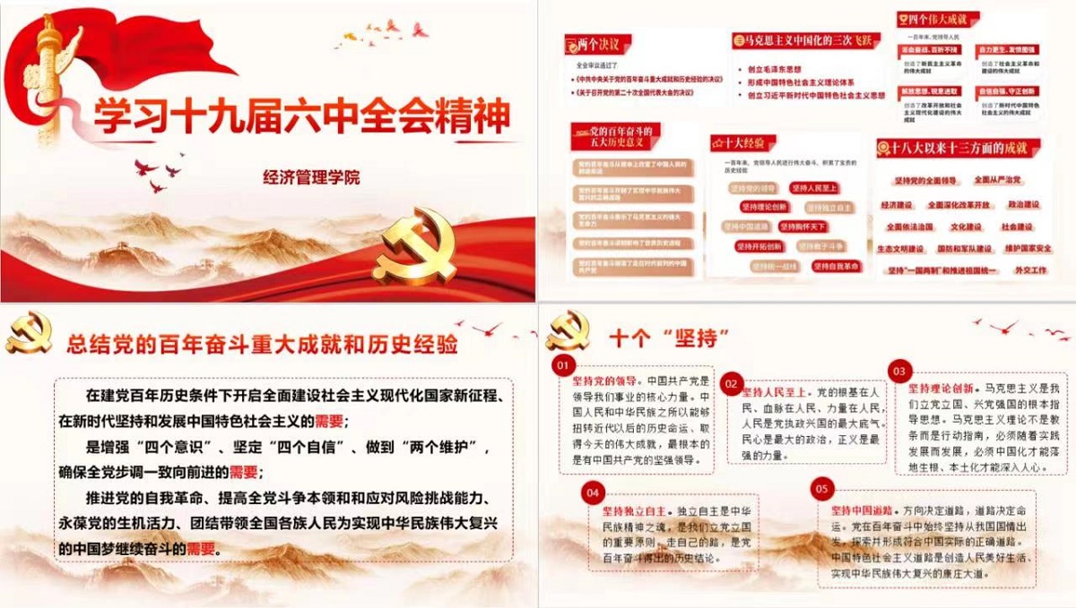 此次学习活动采取线上线下相结合的方式进行,各支部通过学习《中共中央关于党的百年奋斗重大成就和历史经验的决议》和关于《中共中央关于党的百年奋斗重大成就和历史经验的决议》的说明等文件精神,带领支部党员深刻理解党的百年奋斗重大成就和历史经验,全面梳理了一个“主题”、两个“始终”、三个“需要”、四个“伟大成就”、五大历史“意义”等内容。通过学习讨论,支部党员深刻理解党的百年奋斗重大成就和历史经验的重大意义,明晰在建党百年历史条件下开启全面建设社会主义现代化国家新征程、在新时代坚持和发展中国特色社会主义的现实意义。